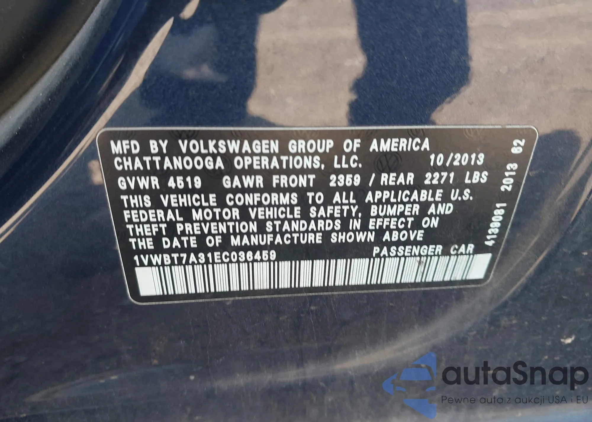 • VIN 1VWBT7A31EC036459