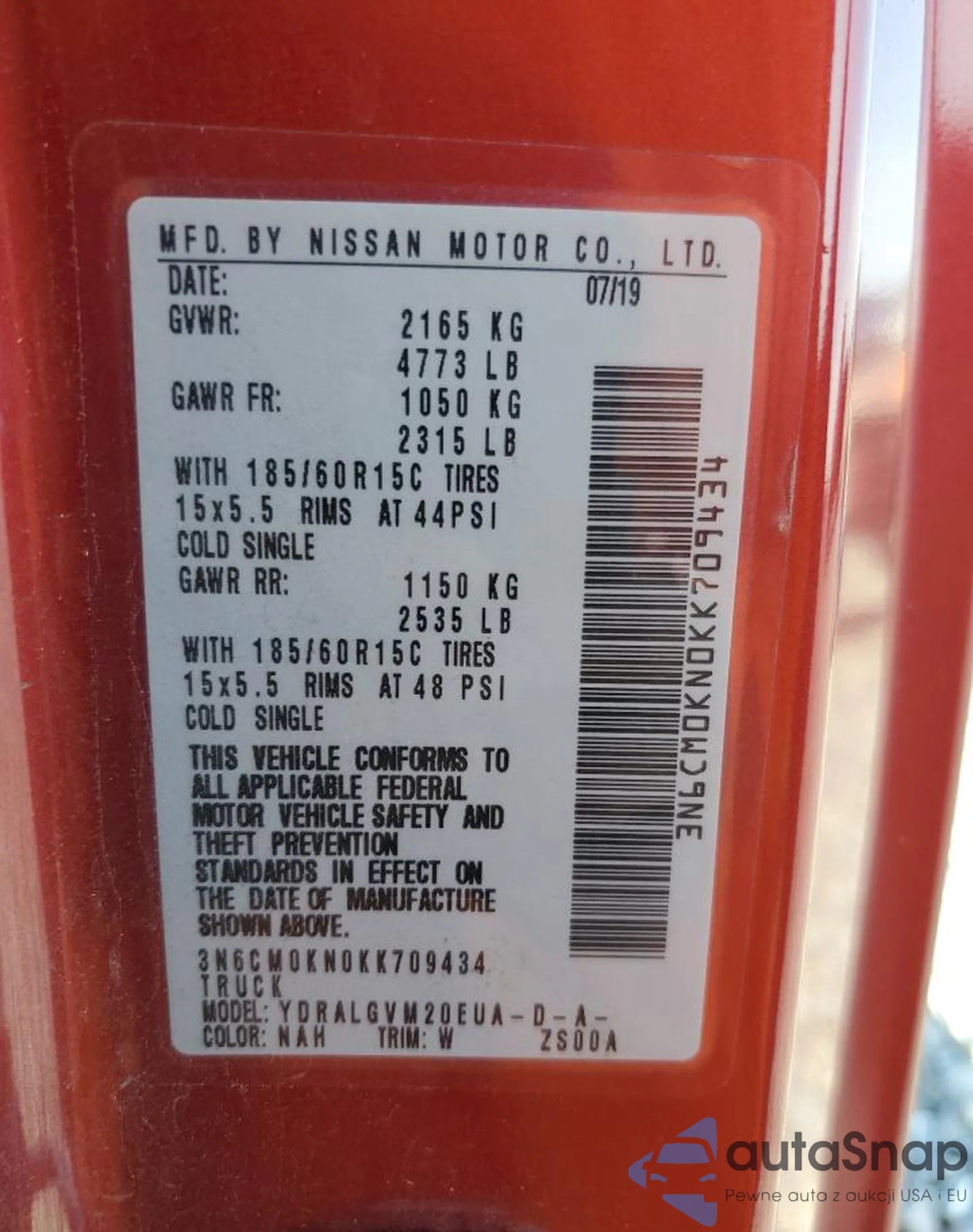 • VIN 3N6CM0KN0KK709434