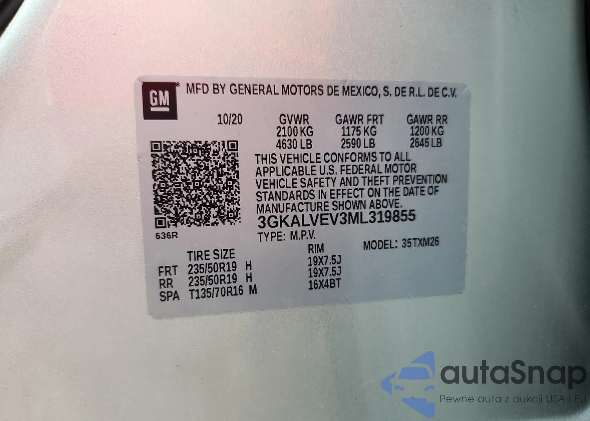 • VIN 3GKALVEV3ML319855