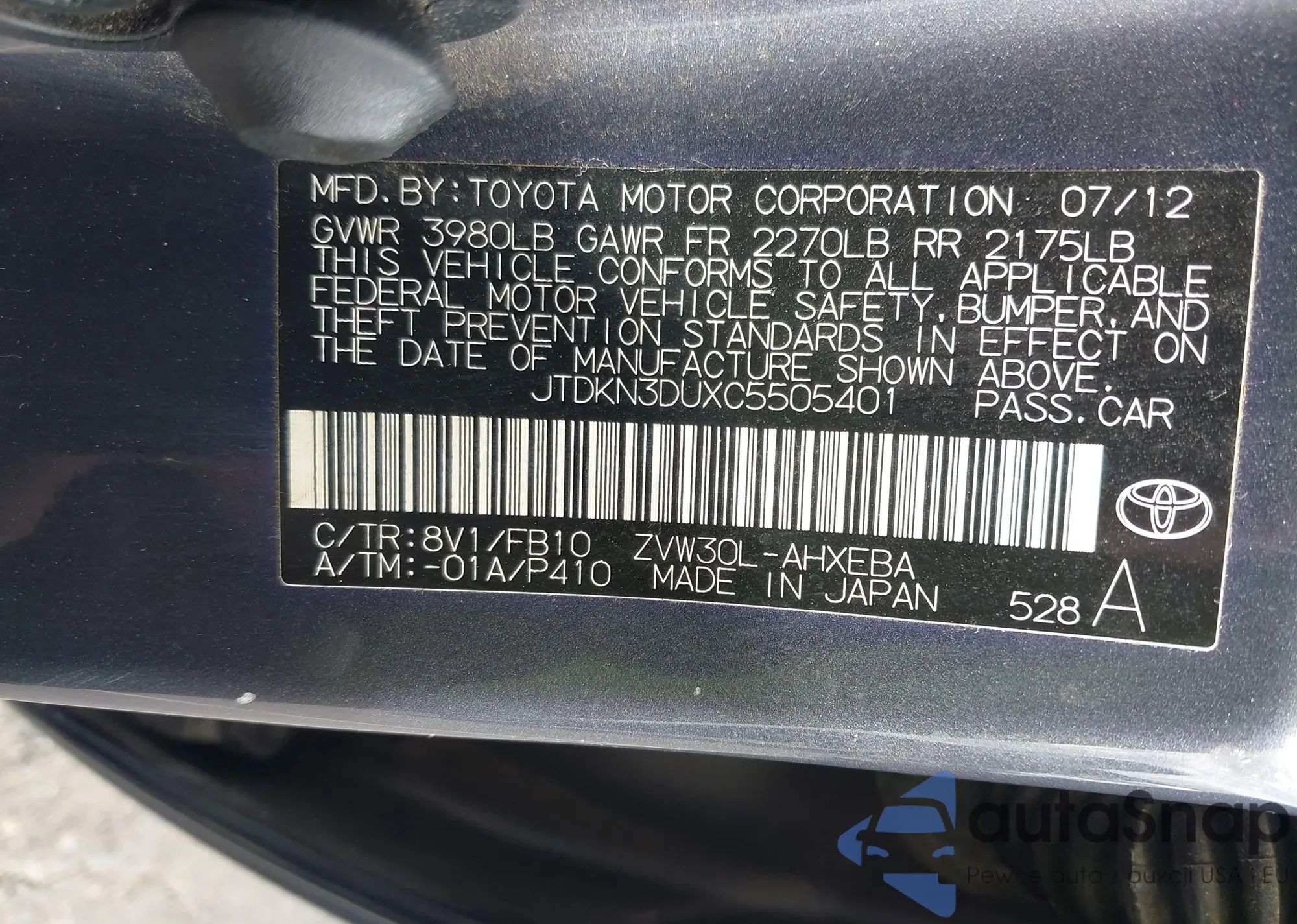 • VIN 4T1BK1EB3DU030901