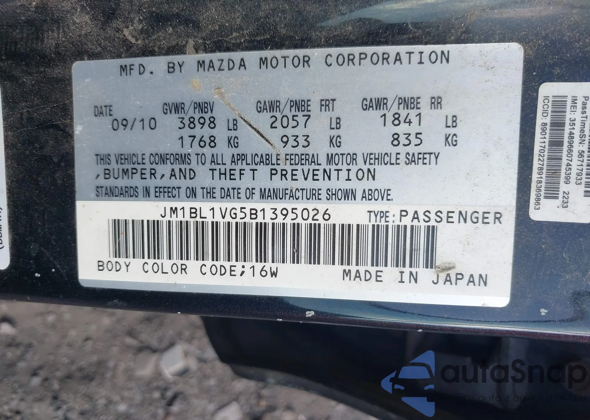 LOT: 43003371 VIN: JM1BL1VG5B1395026