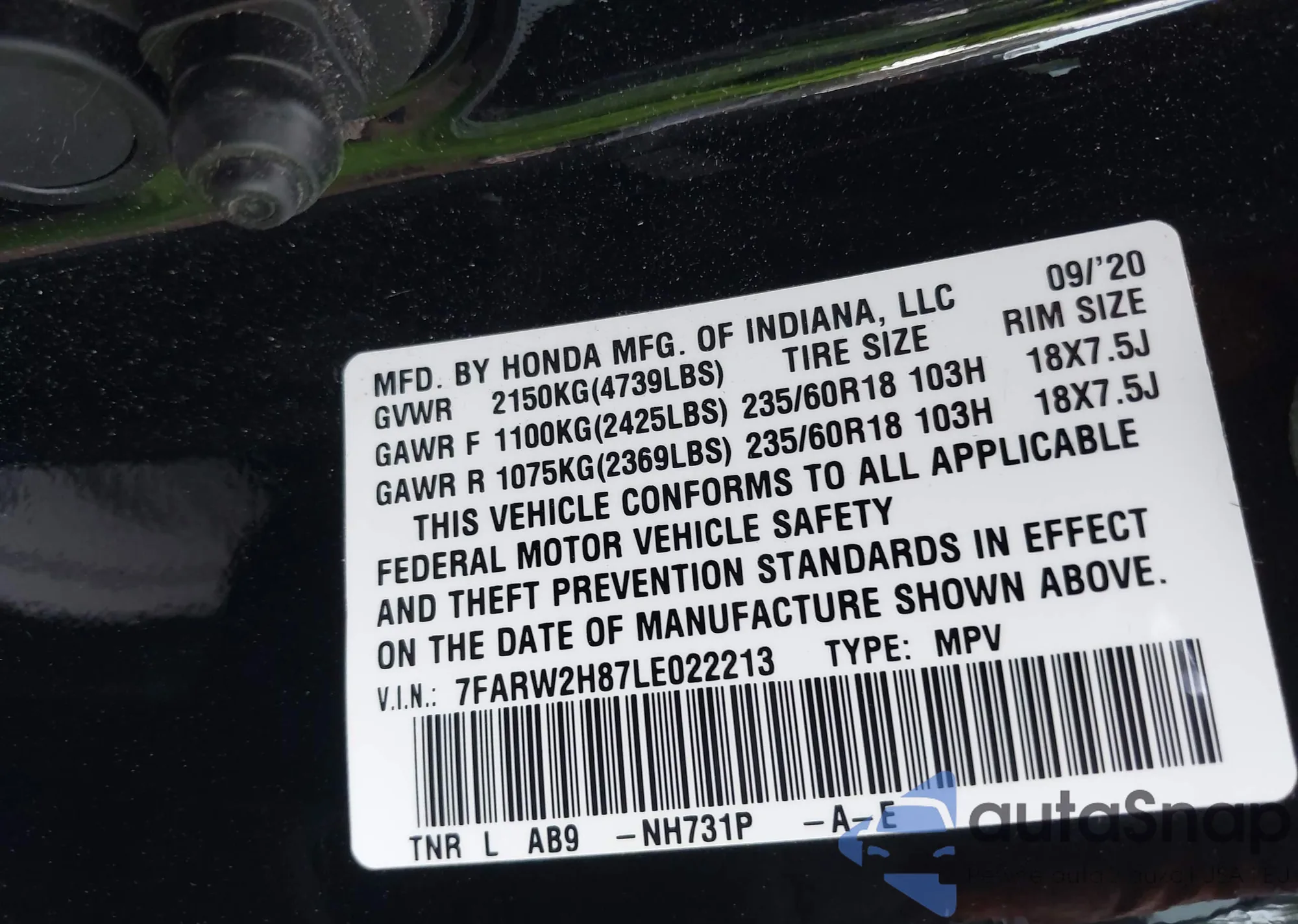 • VIN 7FARW2H87LE022213