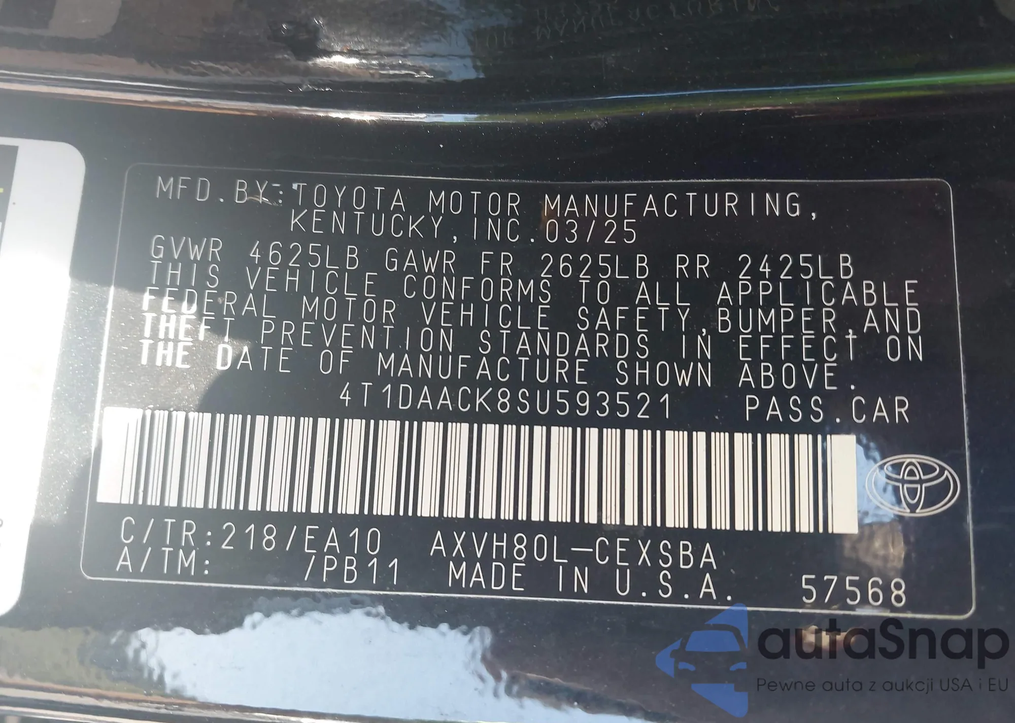 • VIN 4T1DAACK8SU593521