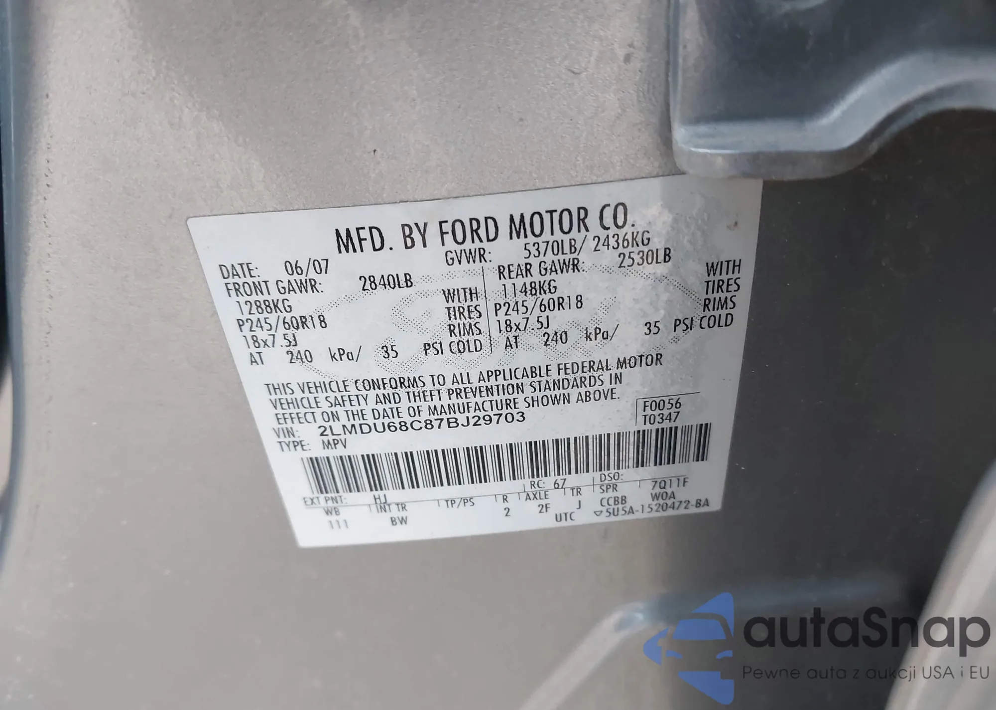 • VIN 2LMDU68C87BJ29703