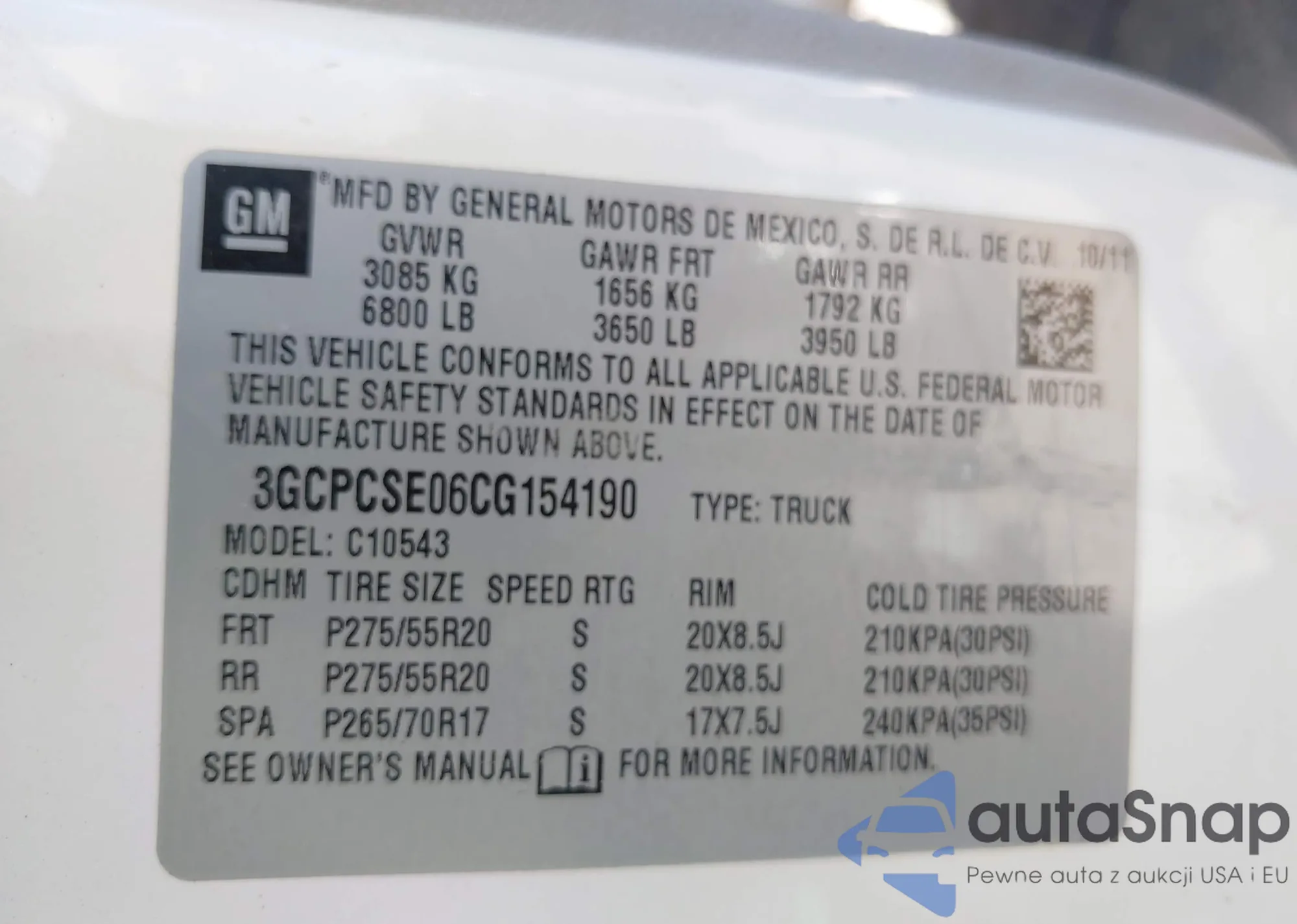 LOT: 43209898 VIN: 3GCPCSE06CG154190