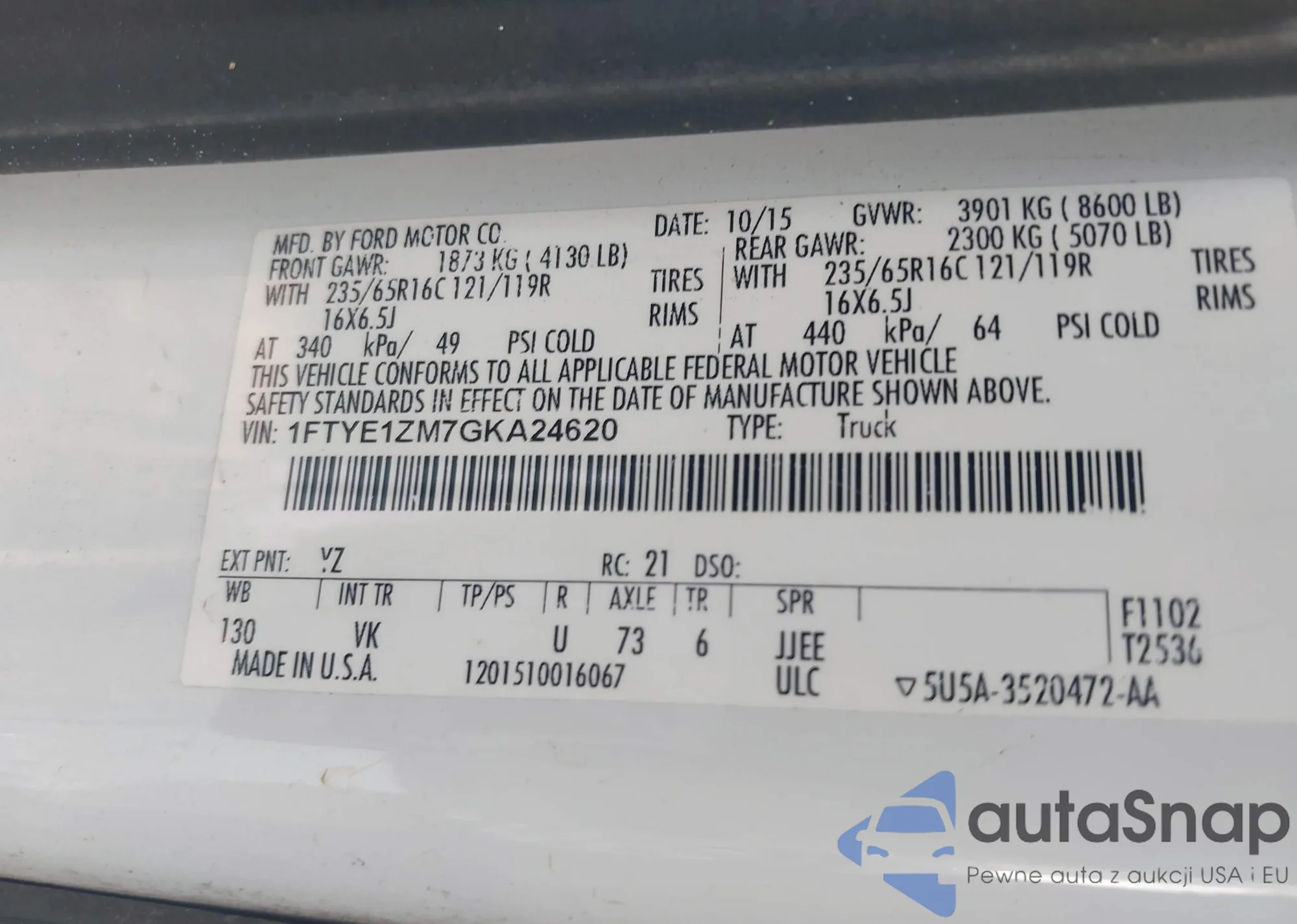 • VIN 1FTYE1ZM7GKA24620