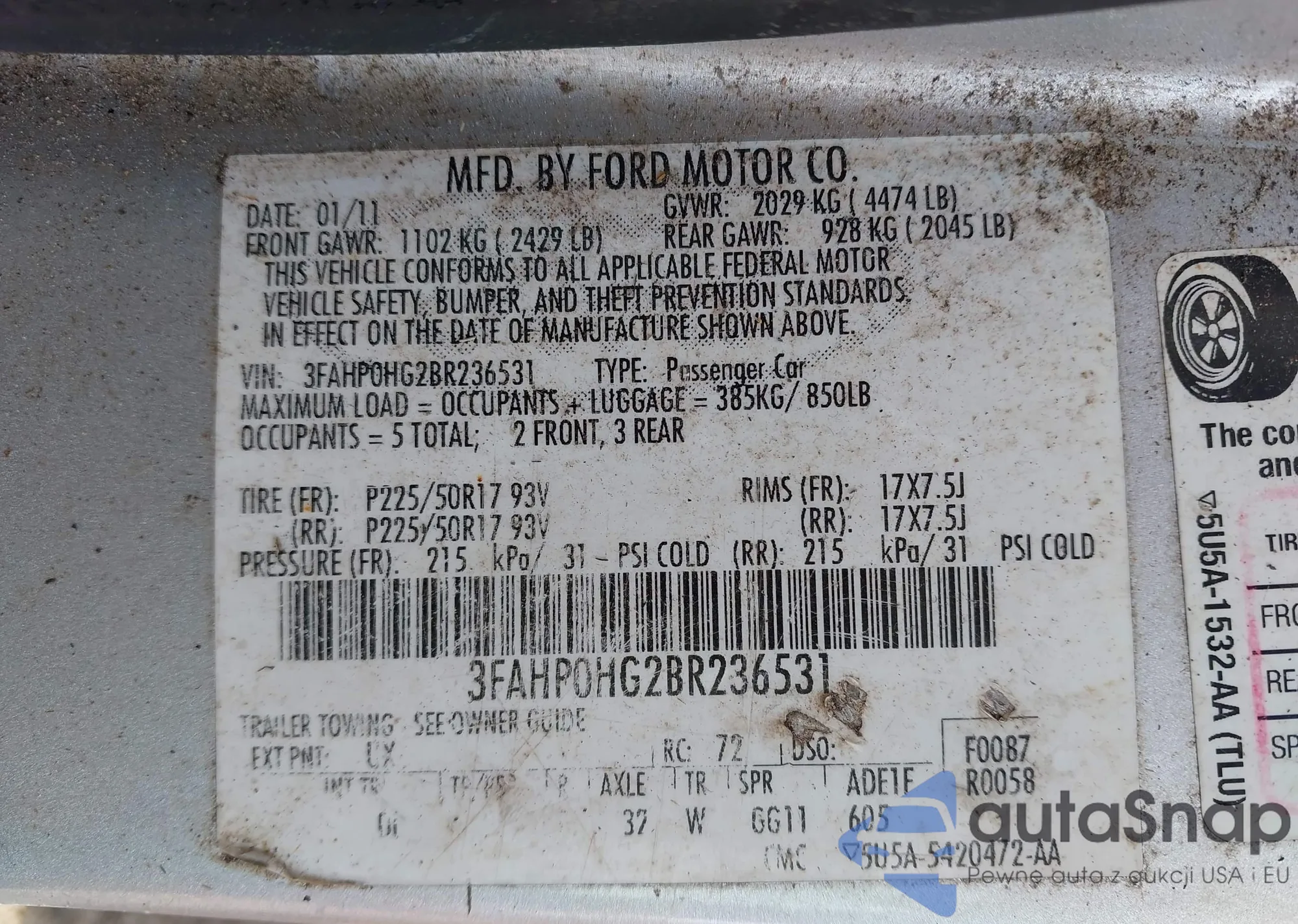 • VIN 3FAHP0HG2BR236531