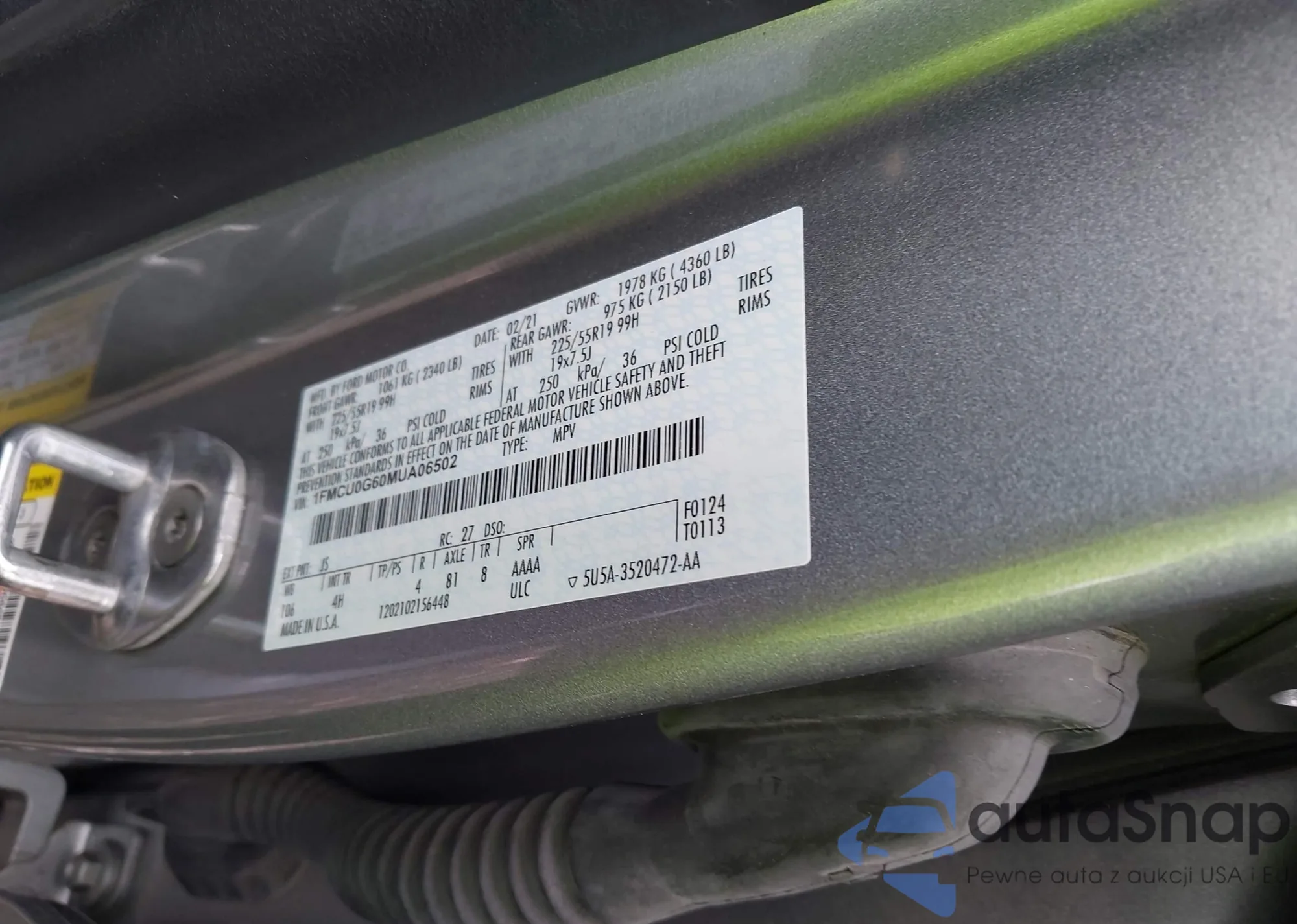 LOT: 42596186 VIN: 1FMCU0G60MUA06502