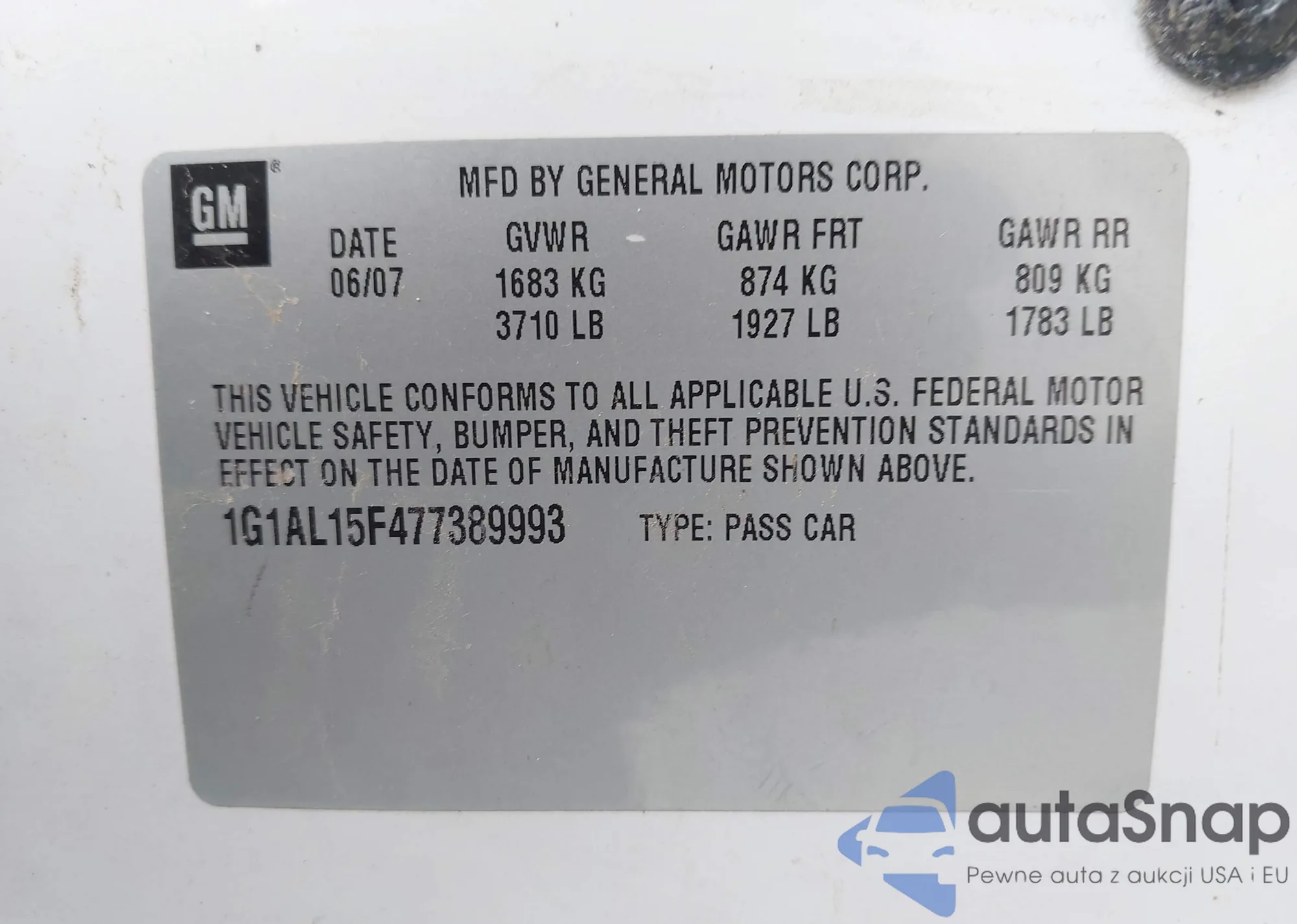 • VIN 1G1AL15F477389993