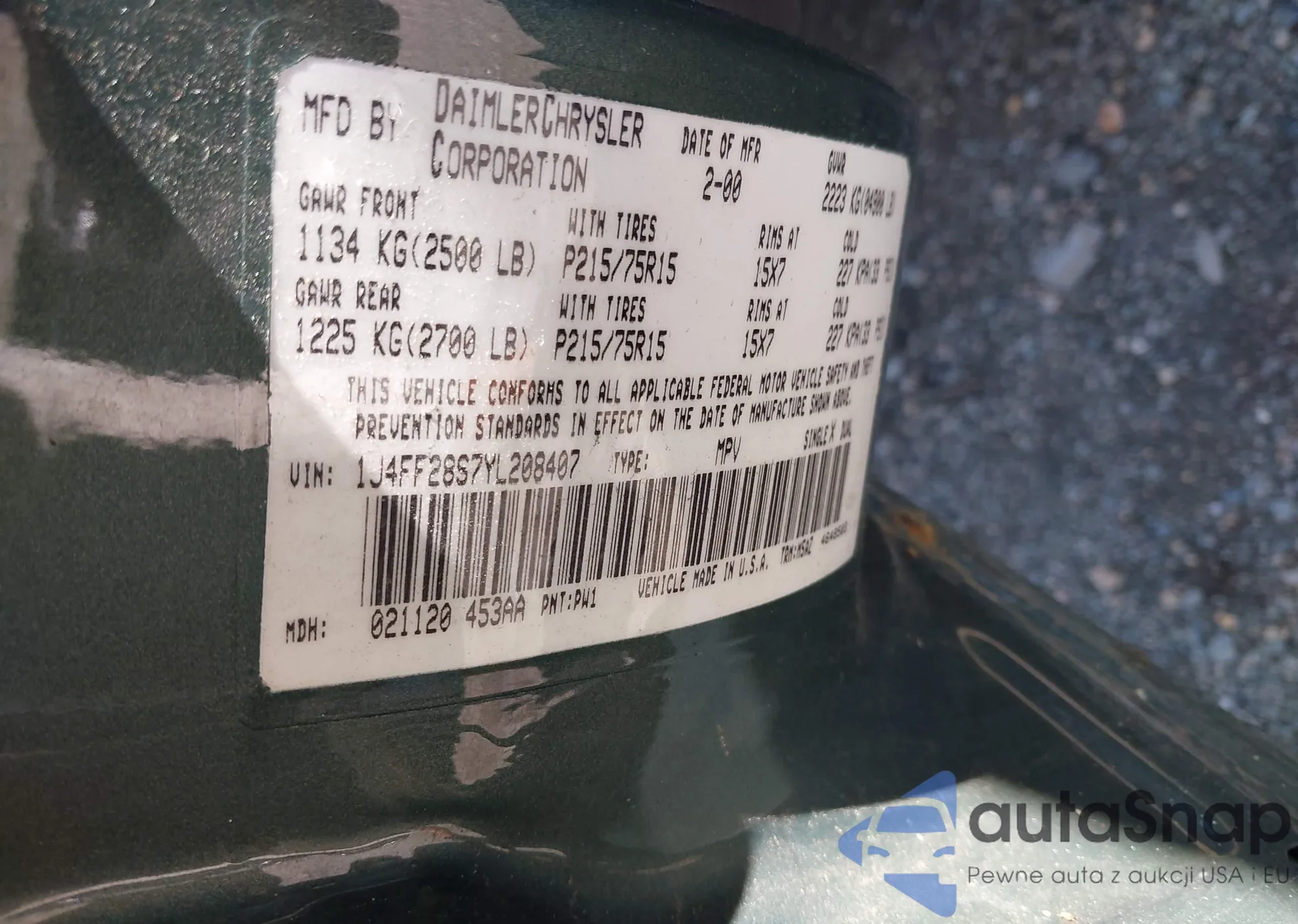 LOT: 43115407 VIN: 1J4FF28S7YL208407