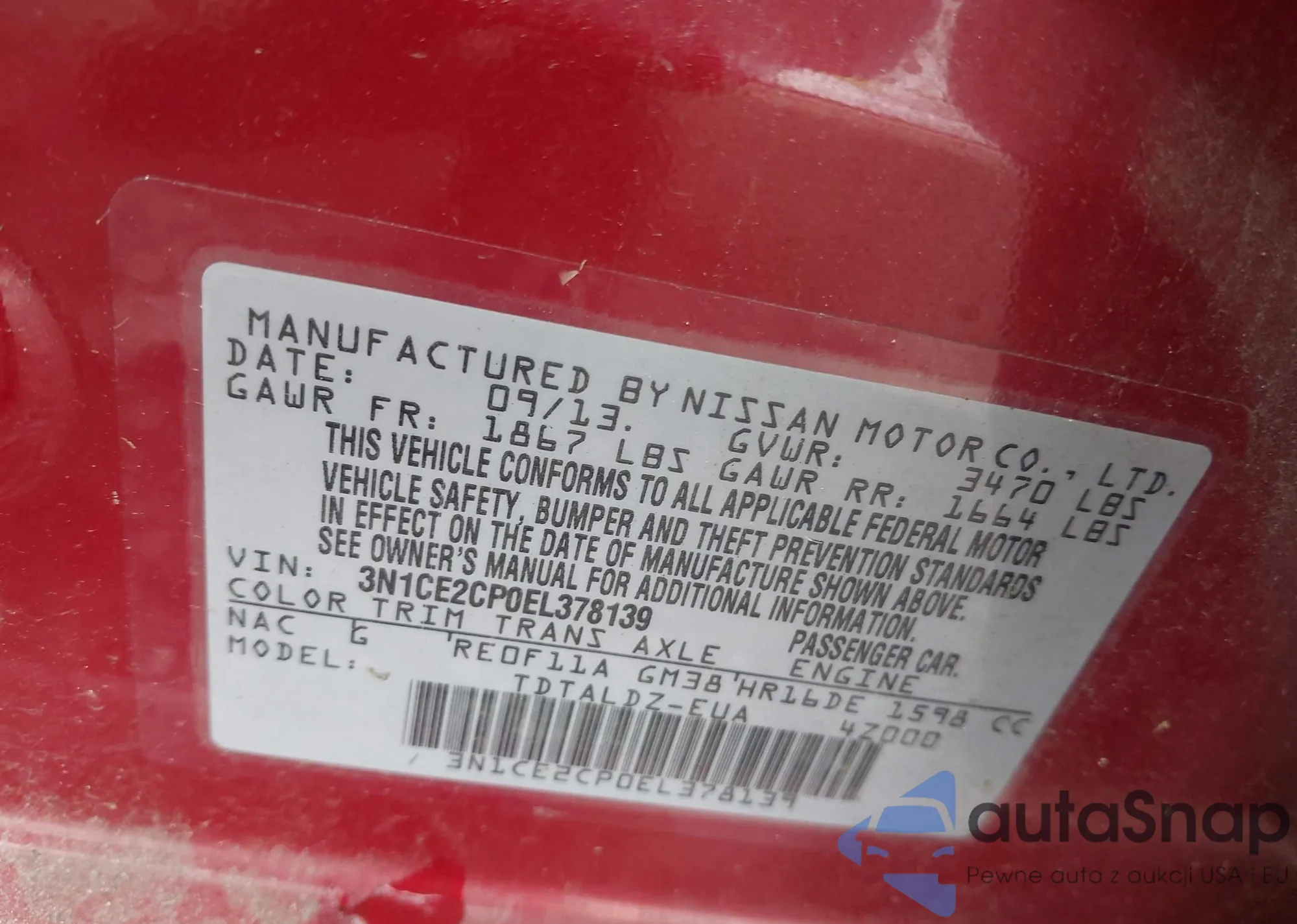 LOT: 42931330 VIN: WDDGF8AB3ER319087