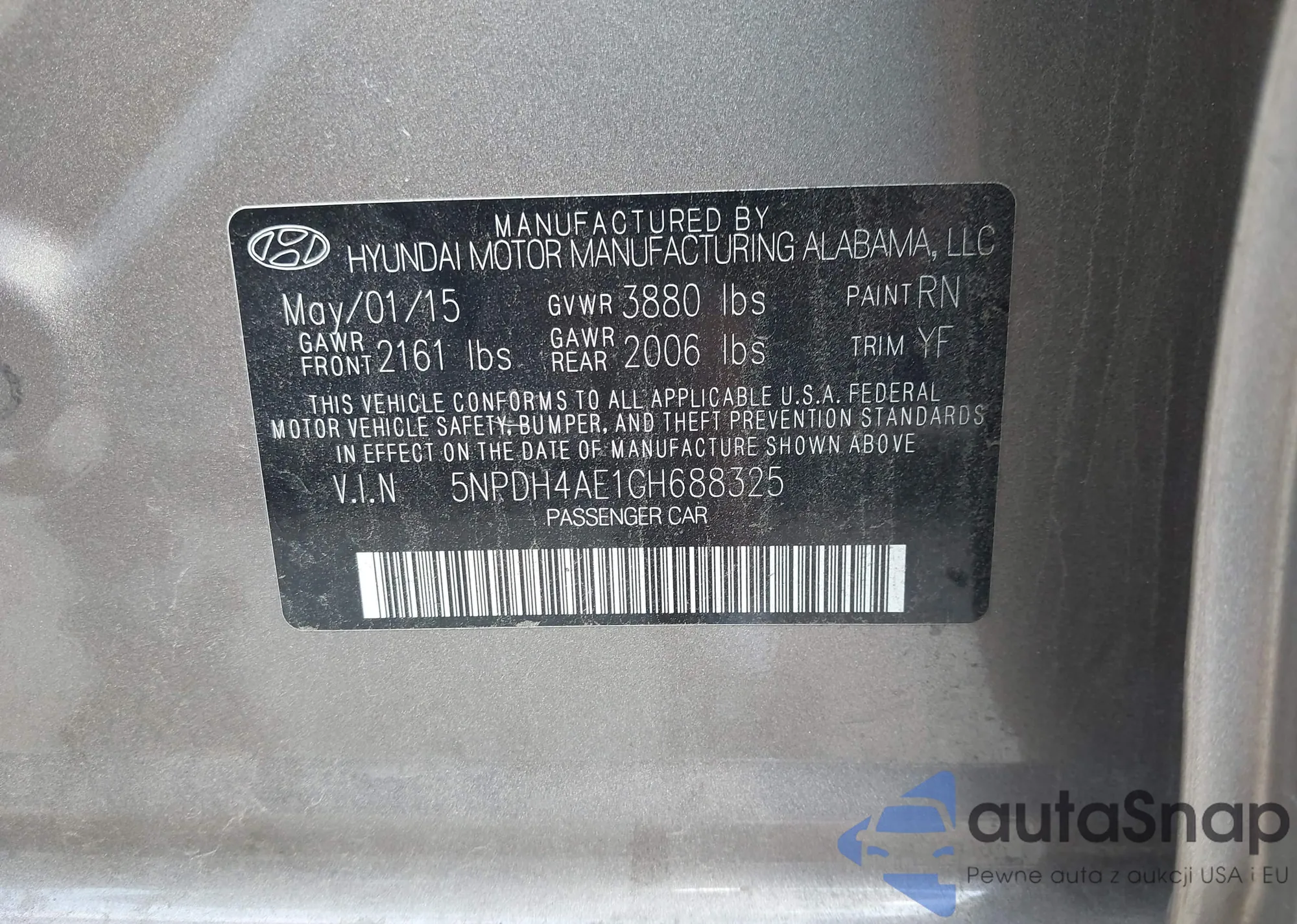LOT: 42920379 VIN: 5NPDH4AE1GH688325