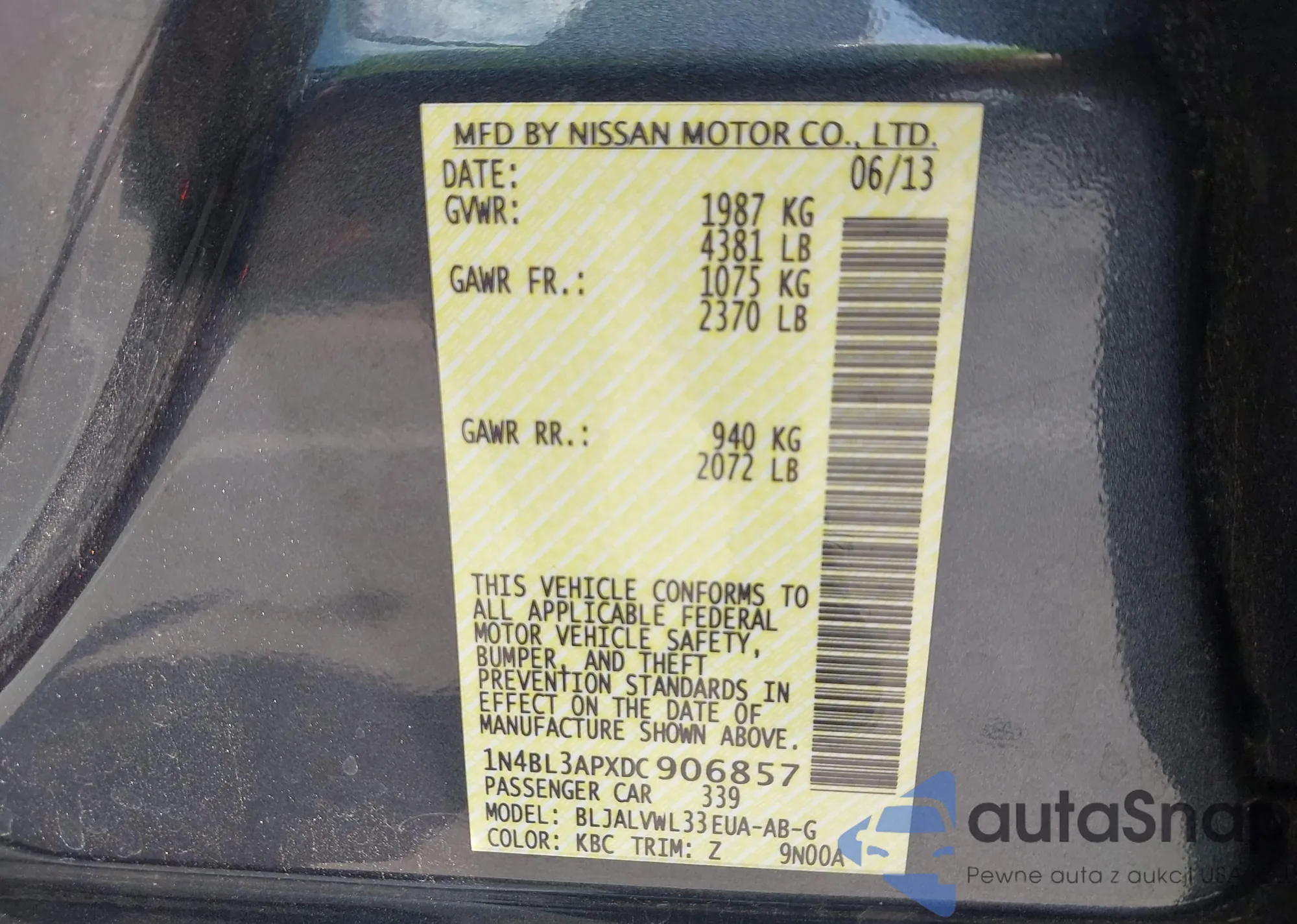 LOT: 42965335 VIN: 1N4BL3APXDC906857