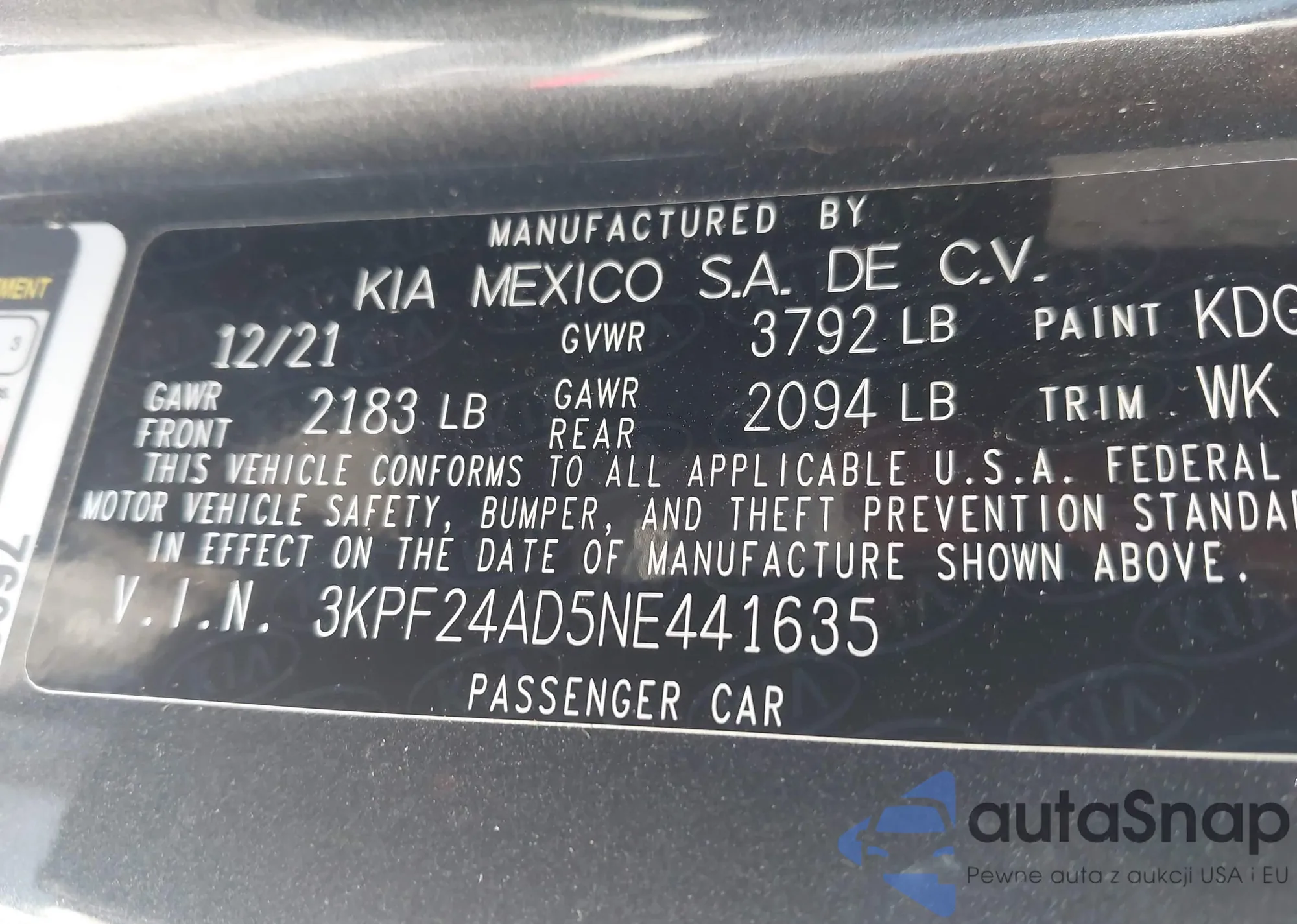 • VIN 3KPF24AD5NE441635