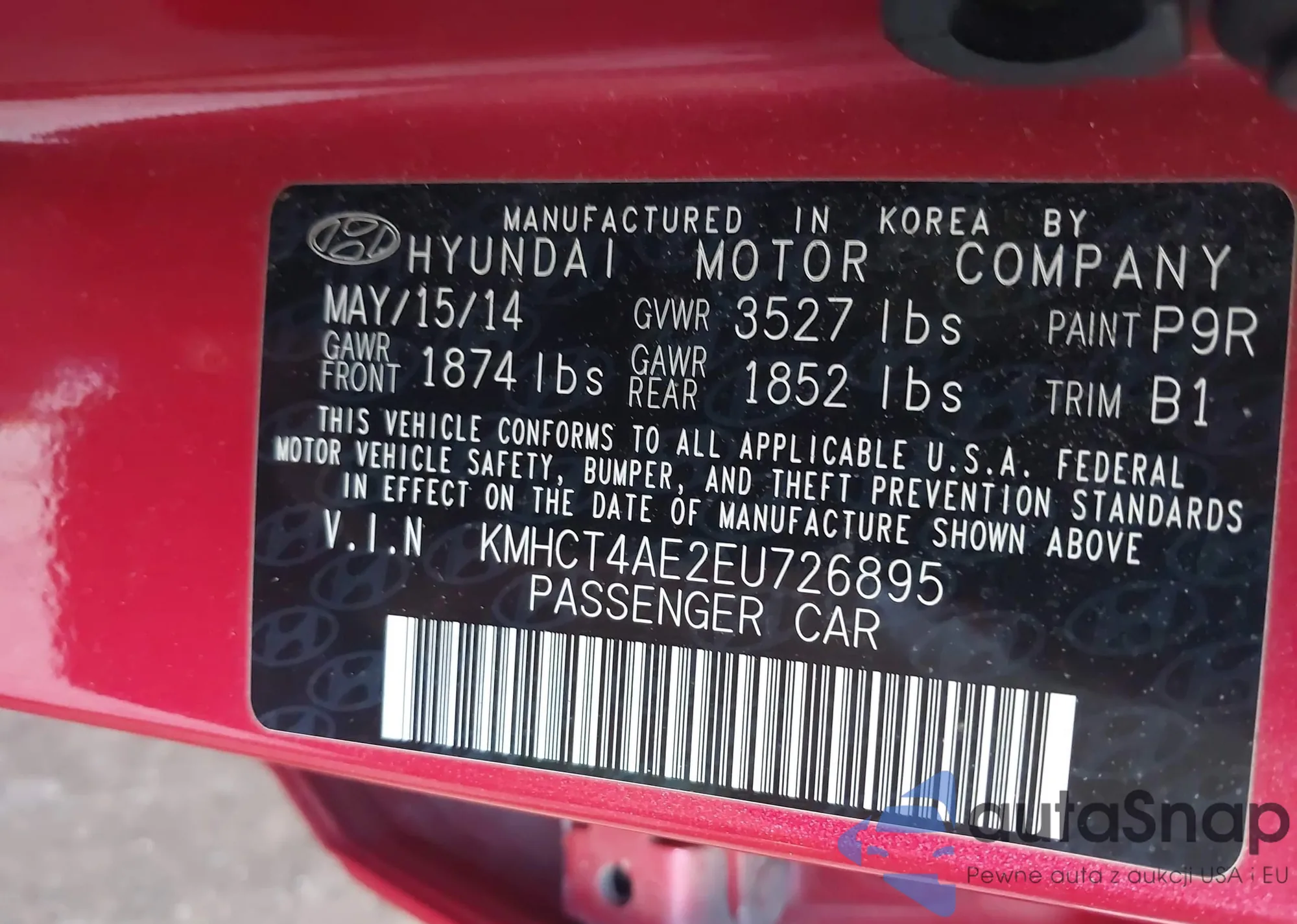 • VIN 5NPEB4ACXEH862281