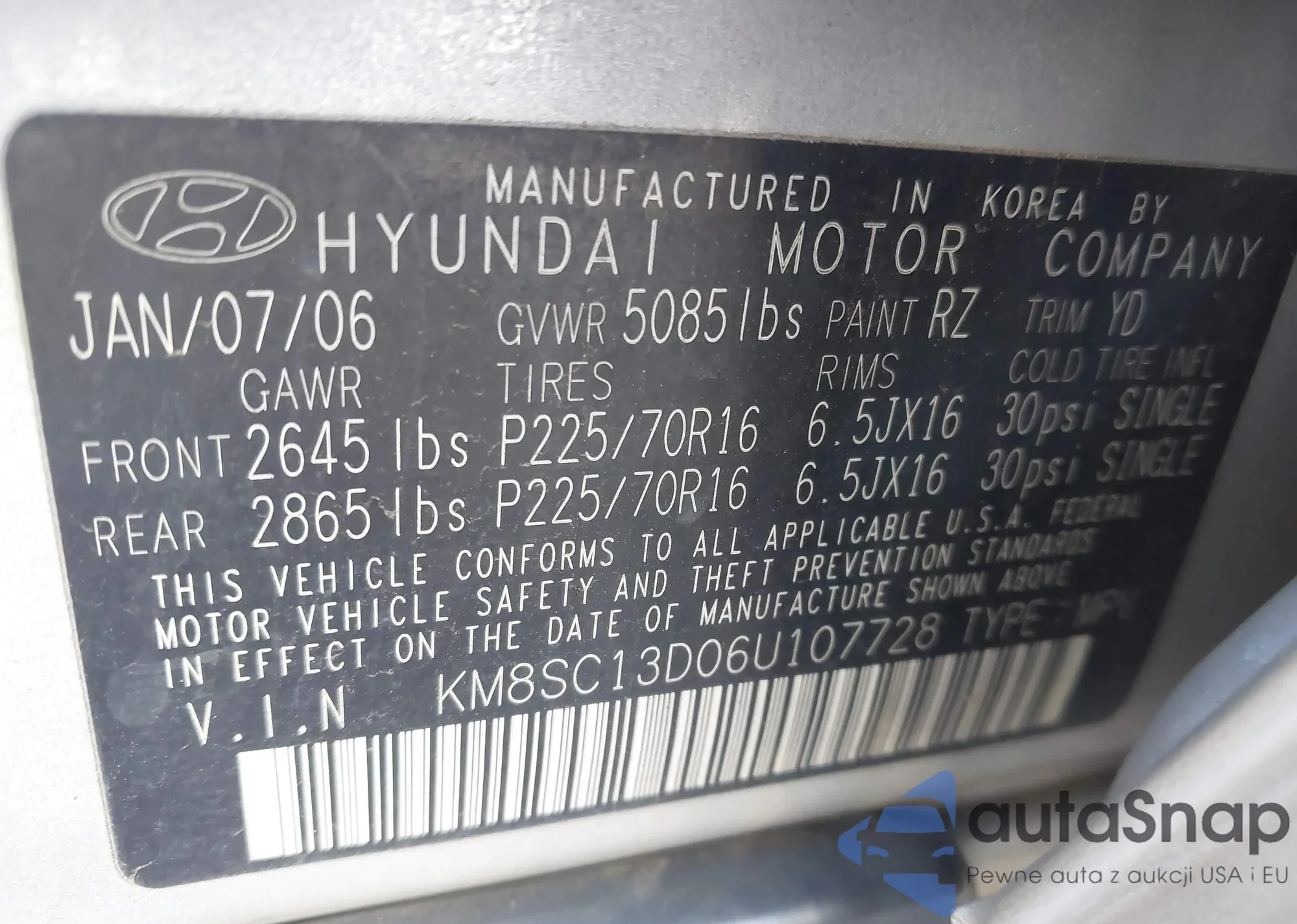 • VIN KM8SC13D06U107728