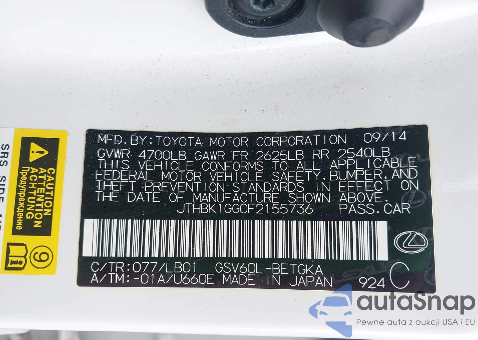 • VIN JTEAAAAH5MJ073811