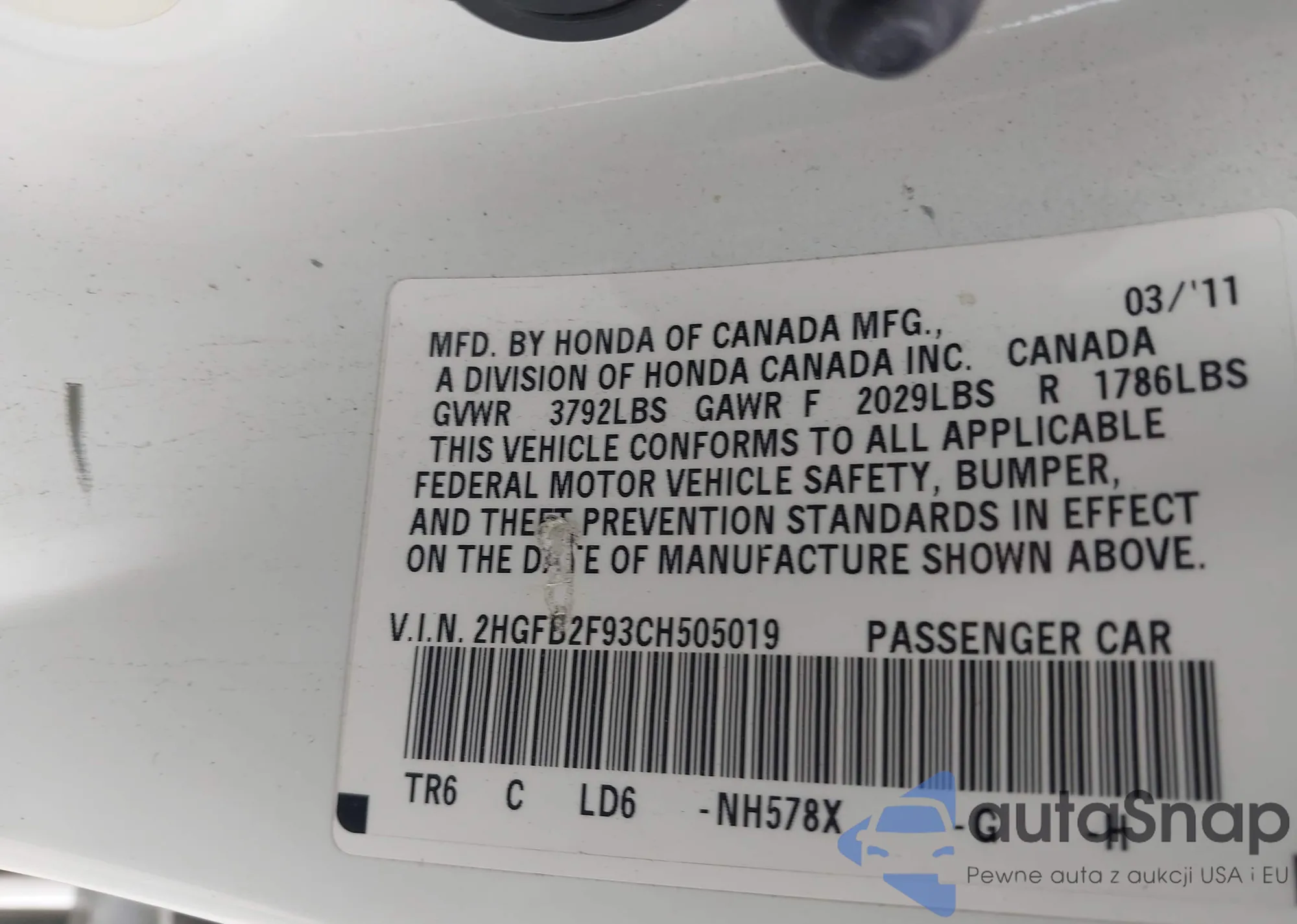 • VIN 4T1BK1EB6DU003479