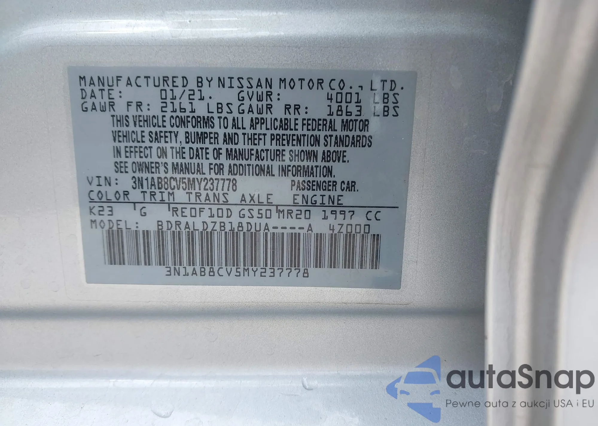 LOT: 43065872 VIN: 1N4AL21E49N537008