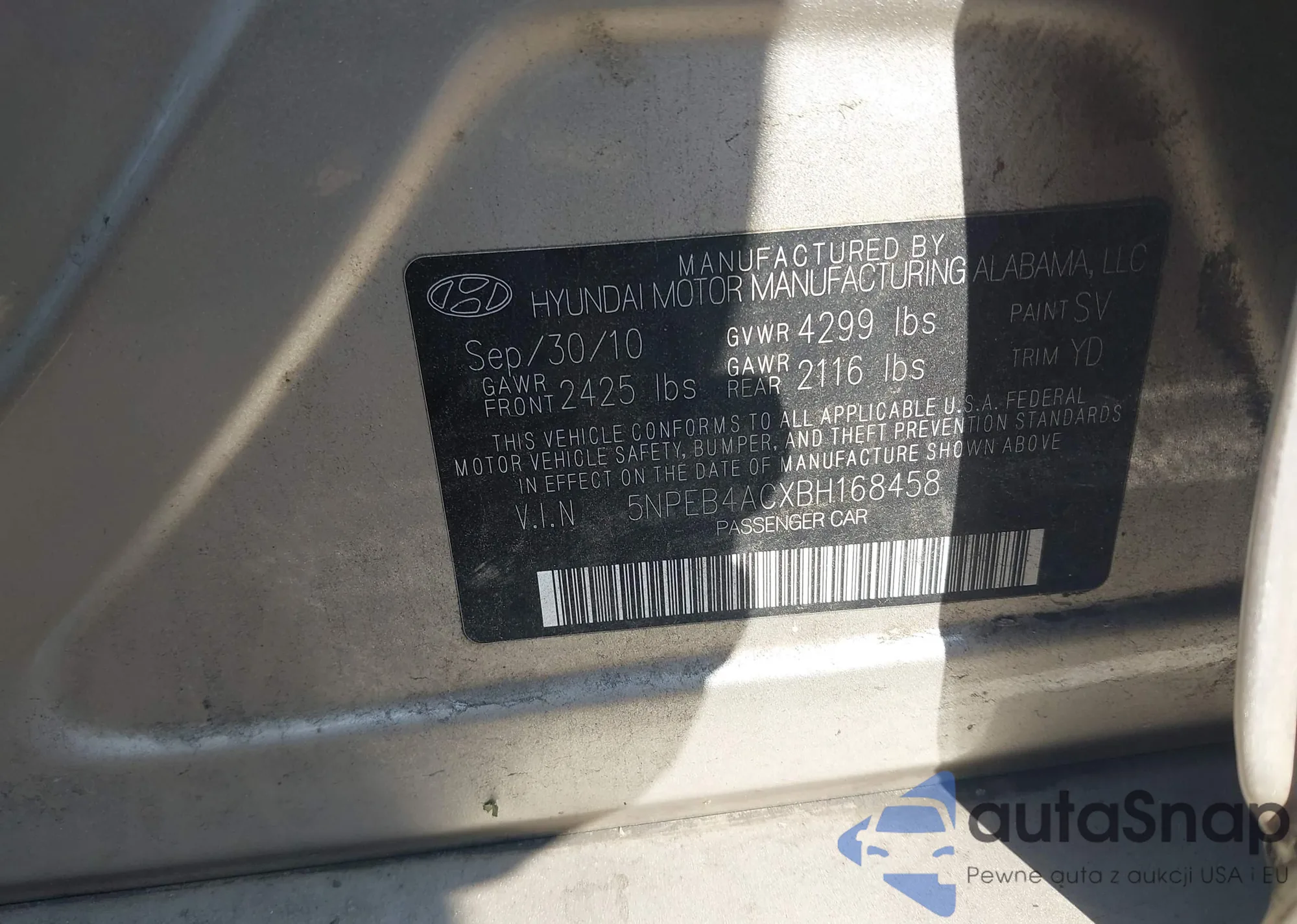 • VIN 5NPEB4ACXBH168458
