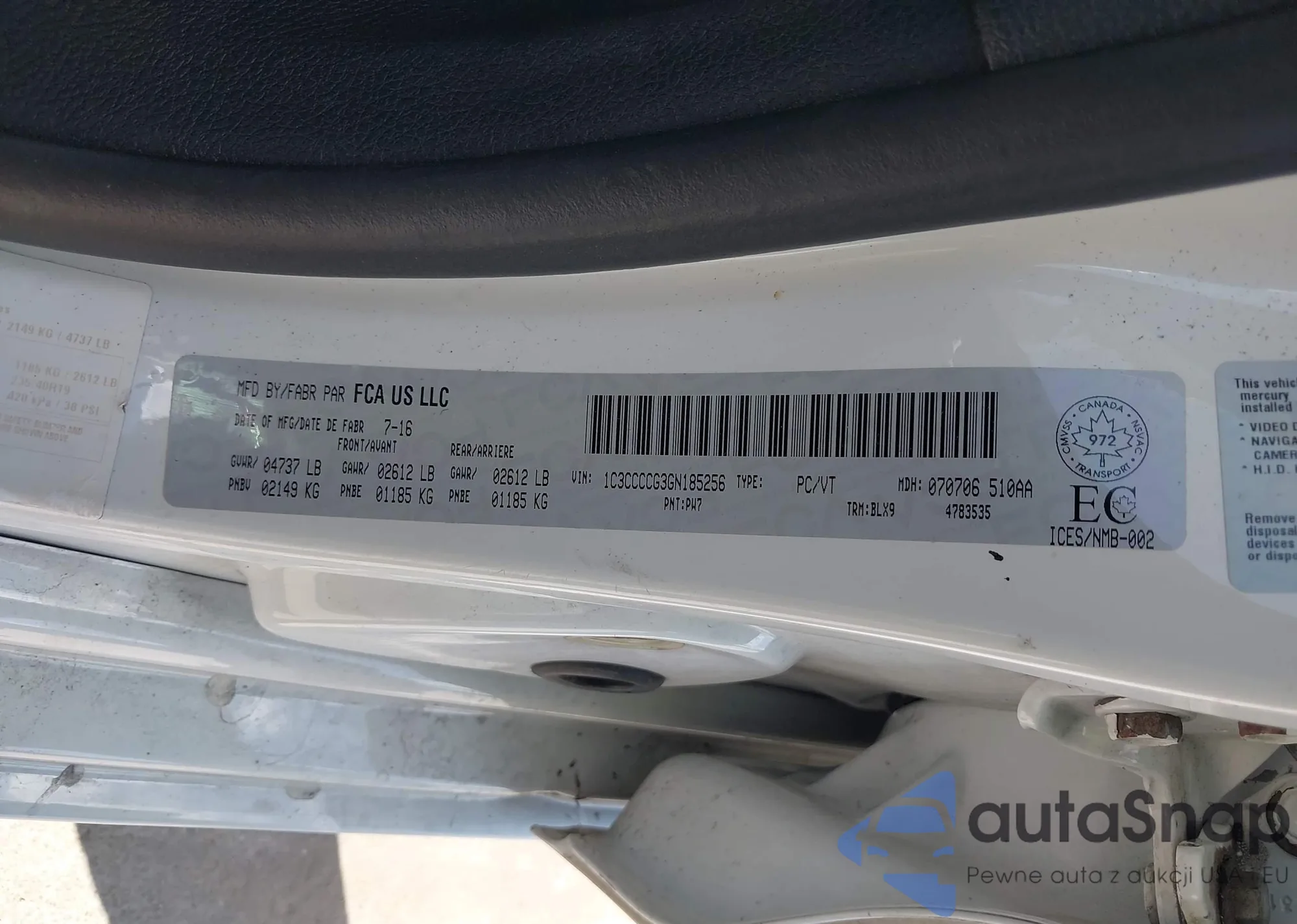 LOT: 43188709 VIN: 1C3CCCCG3GN185256