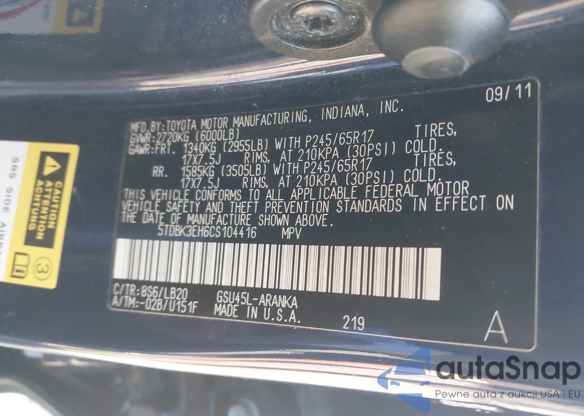 • VIN 5TDBK3EH6CS104416