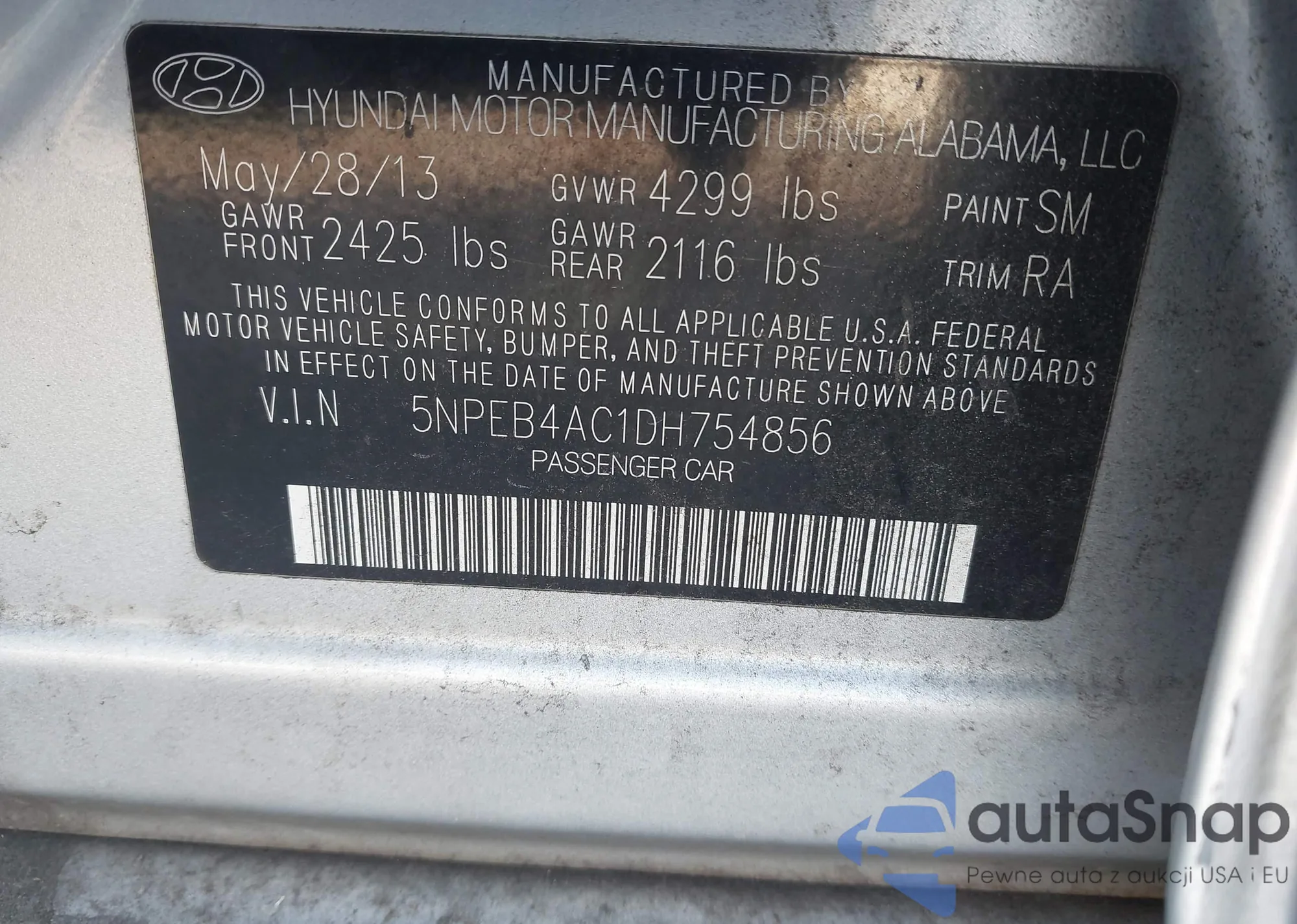 • VIN 5NPEB4AC1DH754856