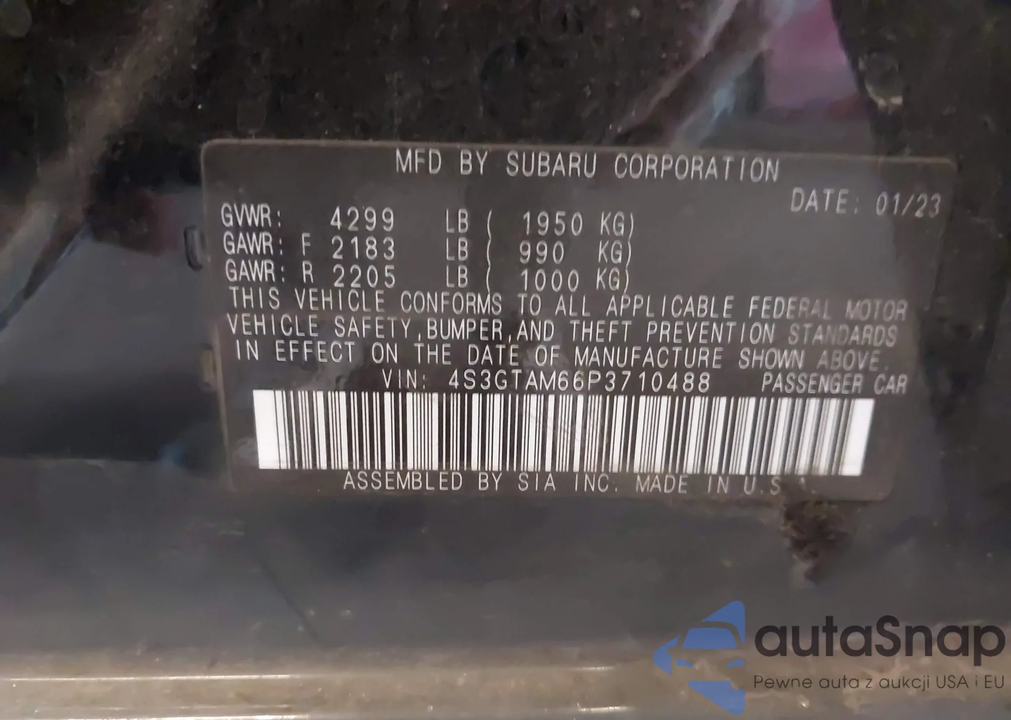 • VIN 4S3GTAM66P3710488