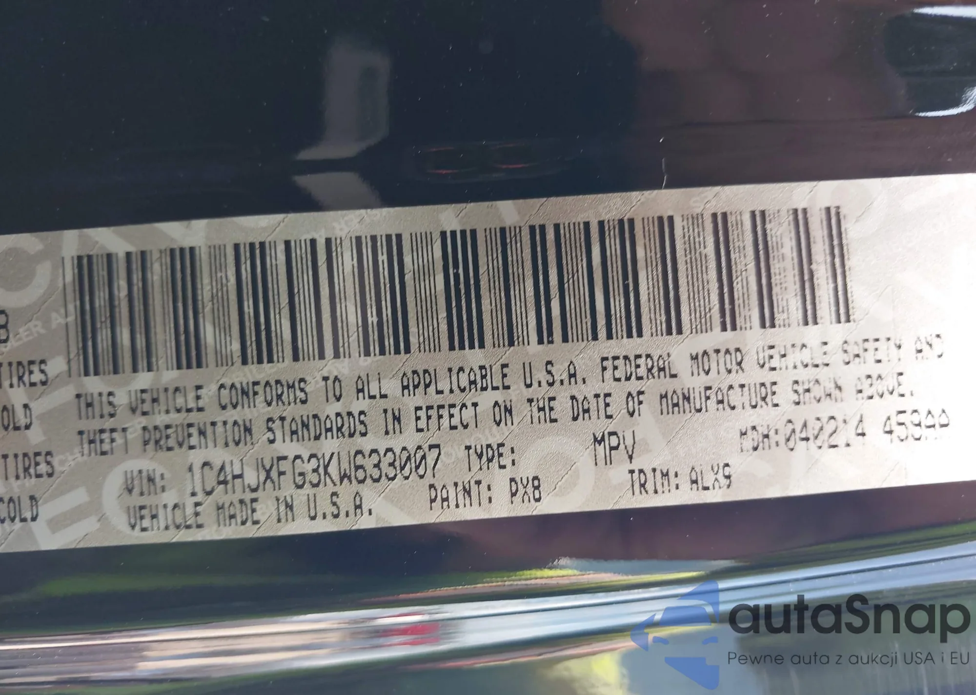 • VIN 1C4HJXFG3KW633007