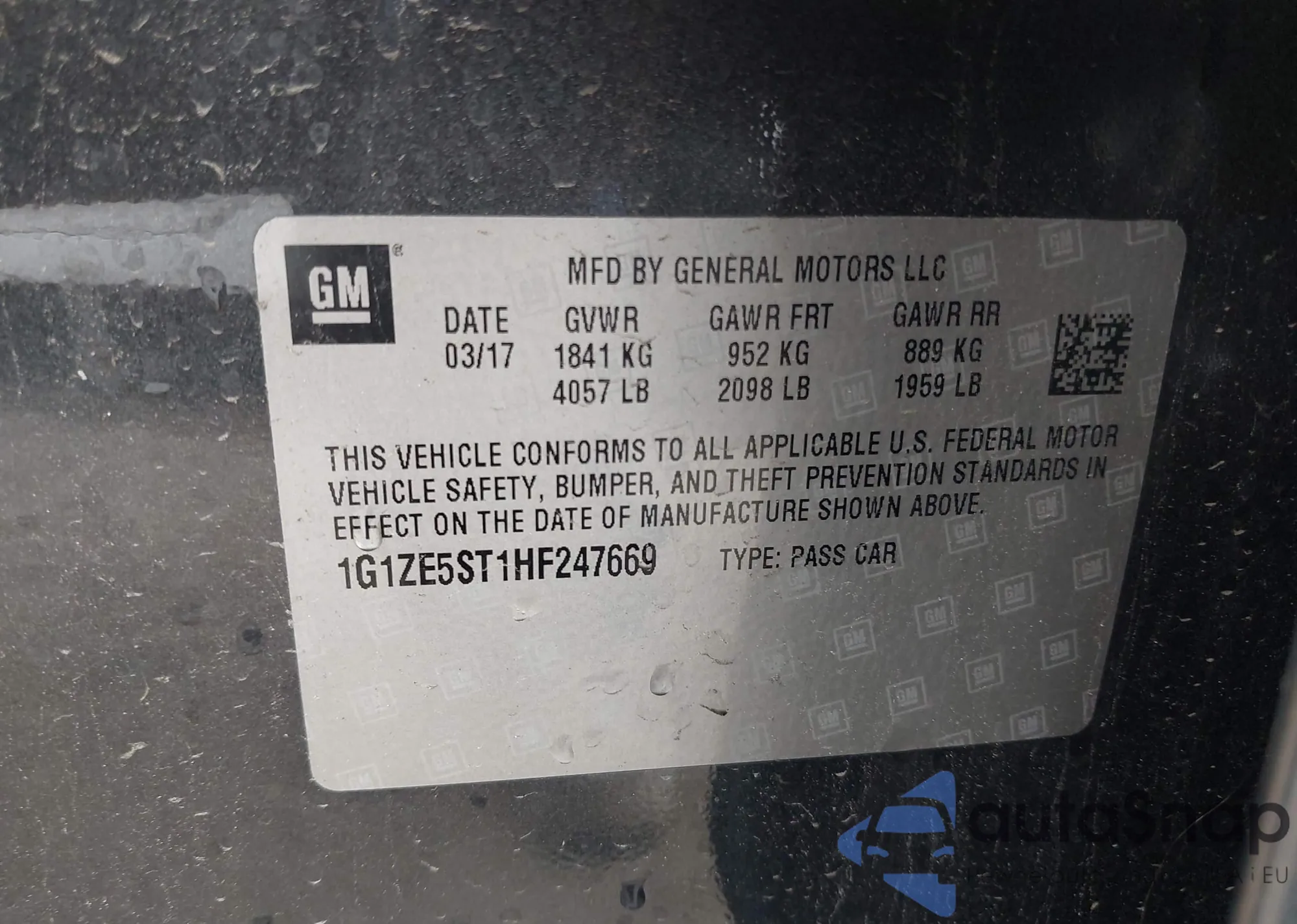 • VIN 1G1ZE5ST1HF247669