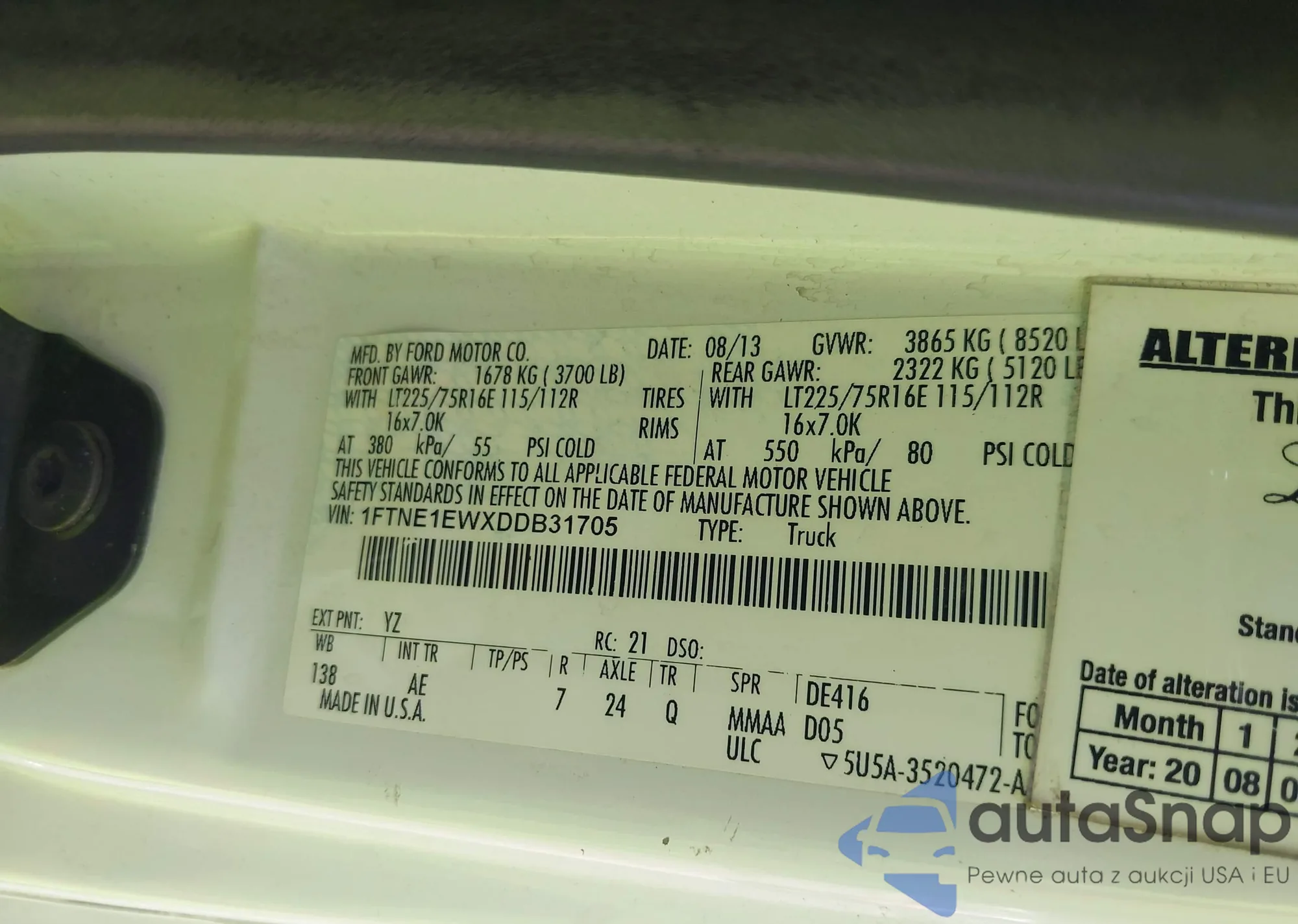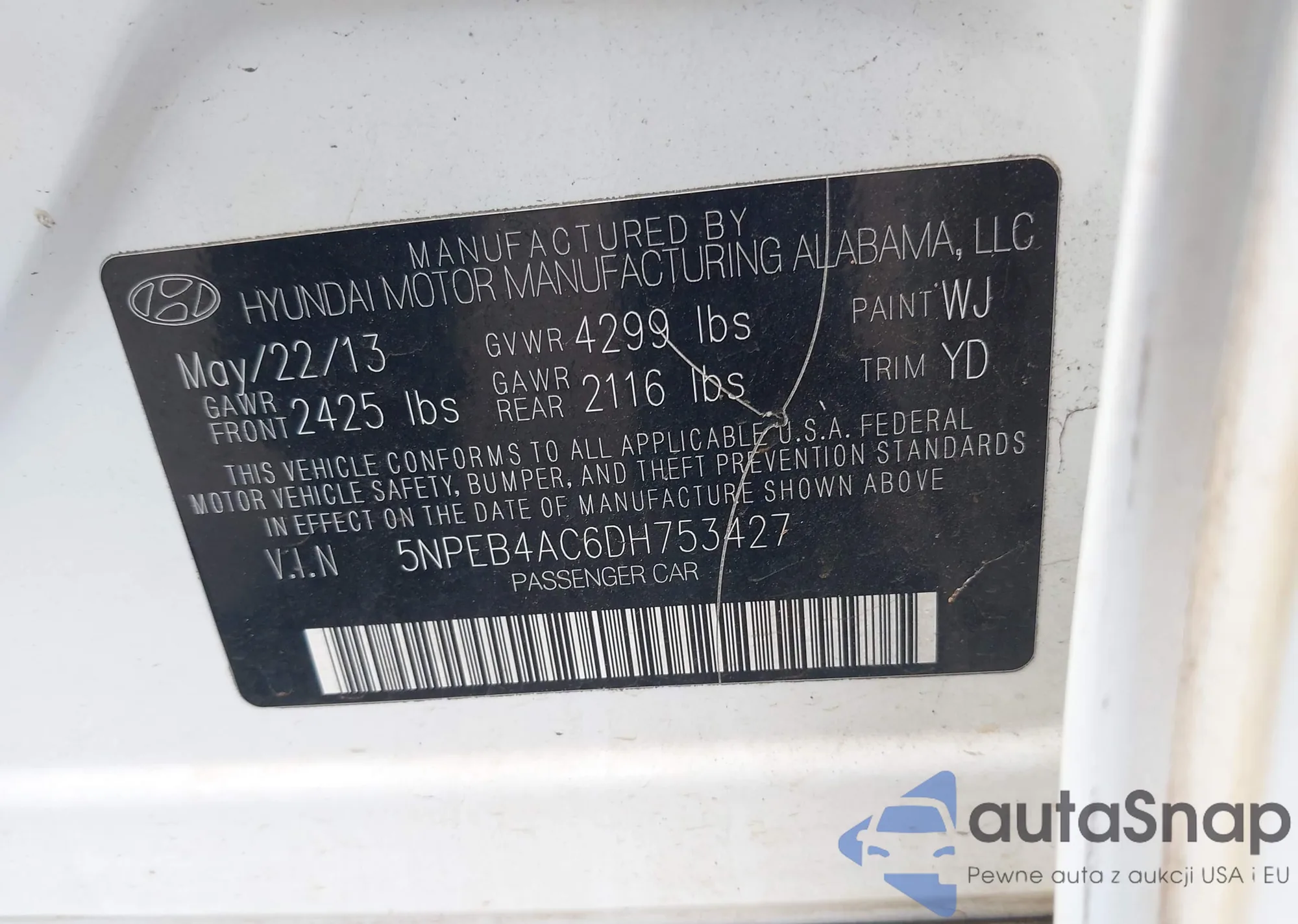 LOT: 43235060 VIN: 1ZVBP8EM0D5203877