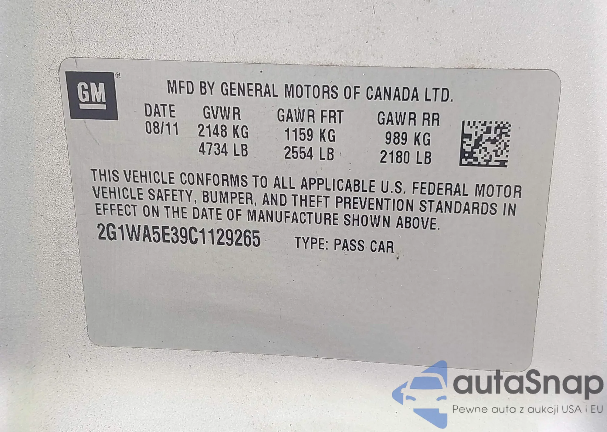 • VIN 2G1WA5E39C1129265