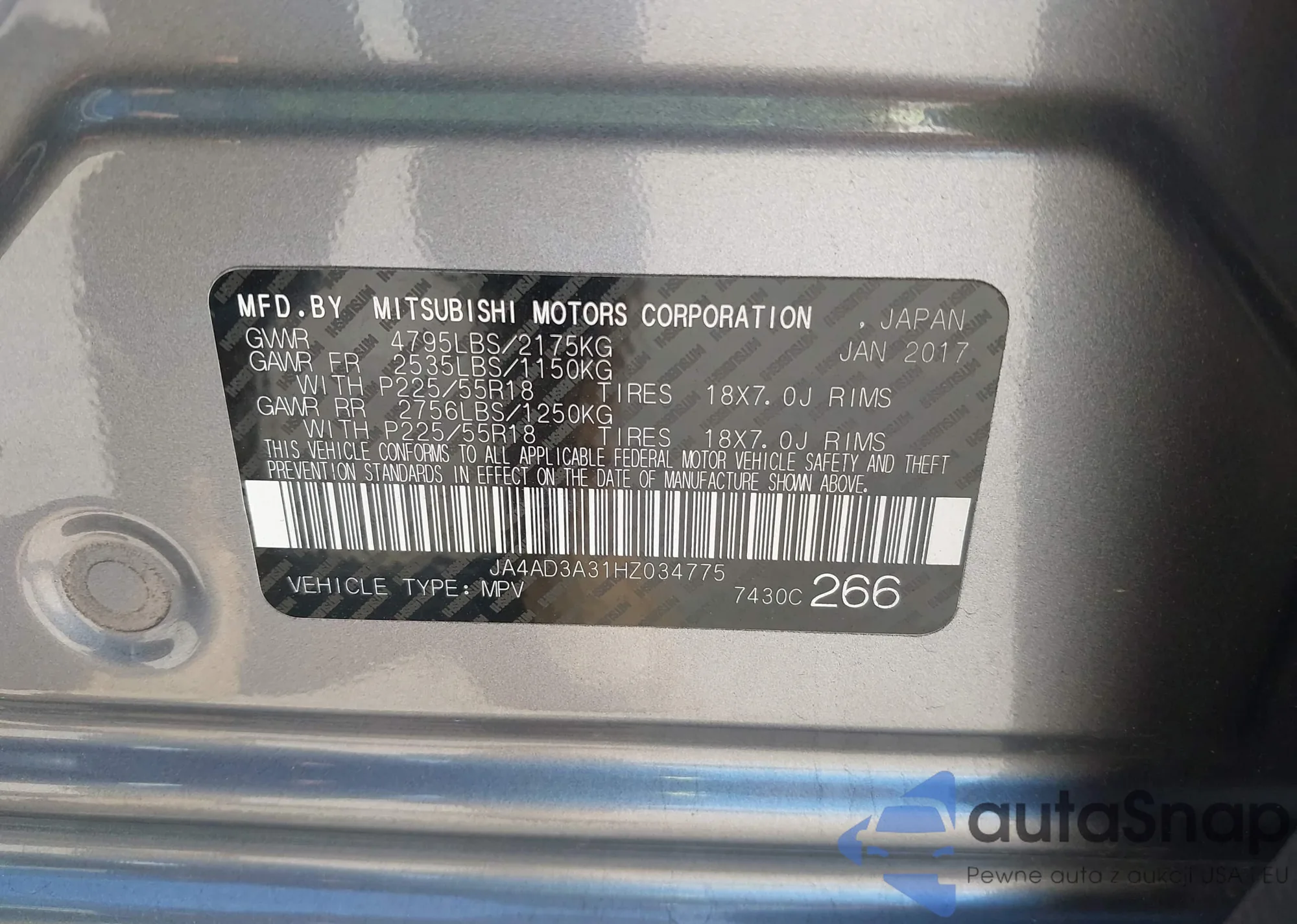 LOT: 42912467 VIN: JA4AD3A31HZ034775