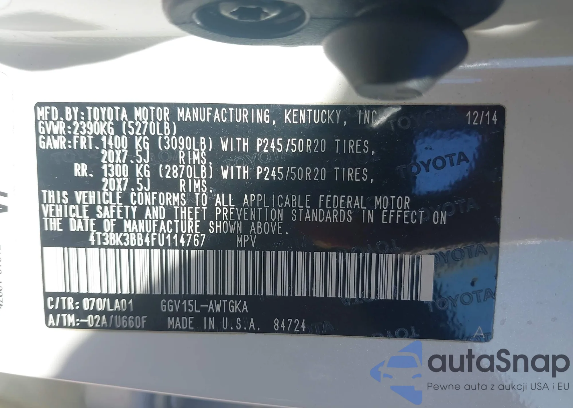 • VIN 4T3BK3BB4FU114767