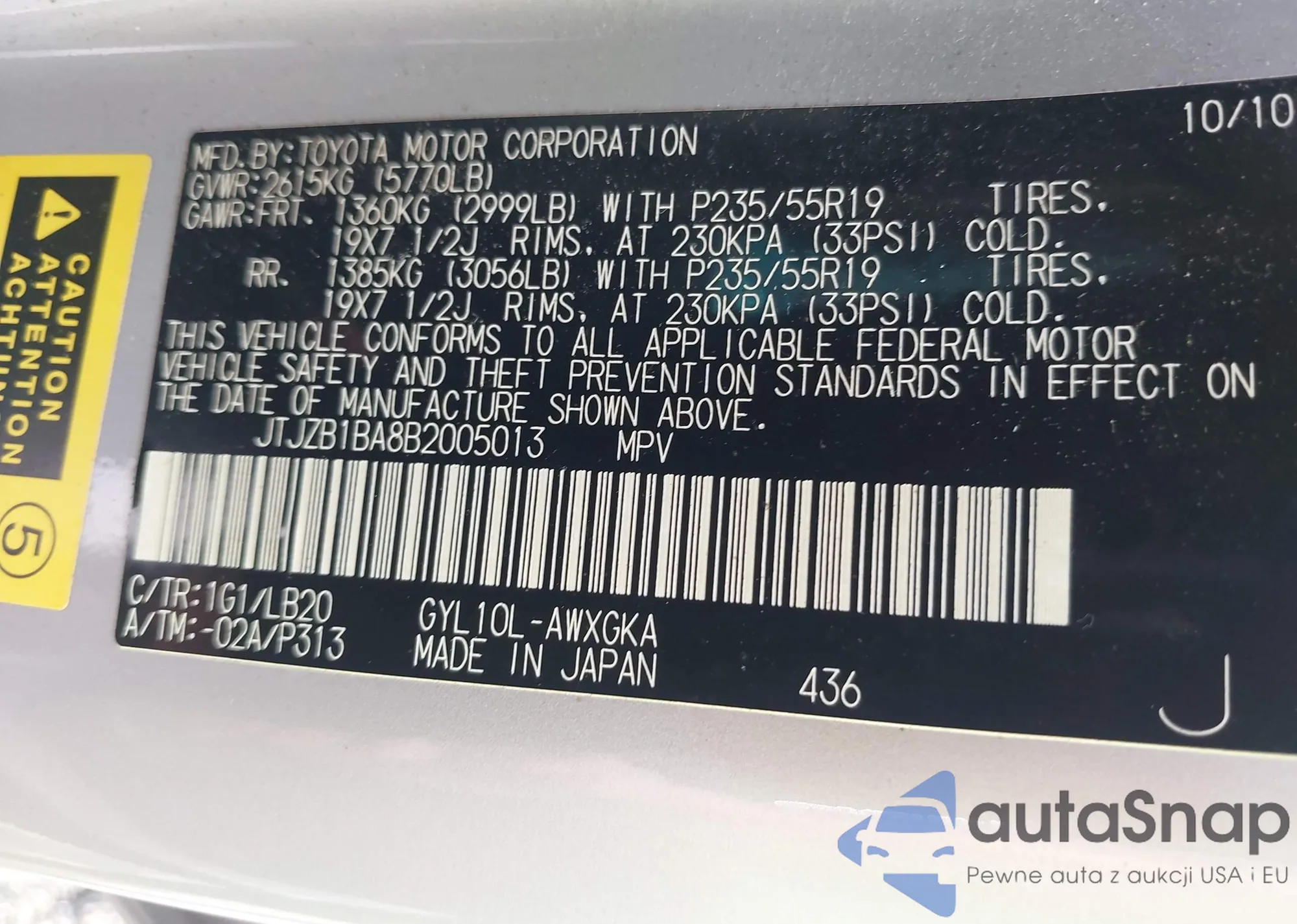 LOT: 42656545 VIN: JTJZB1BA8B2005013