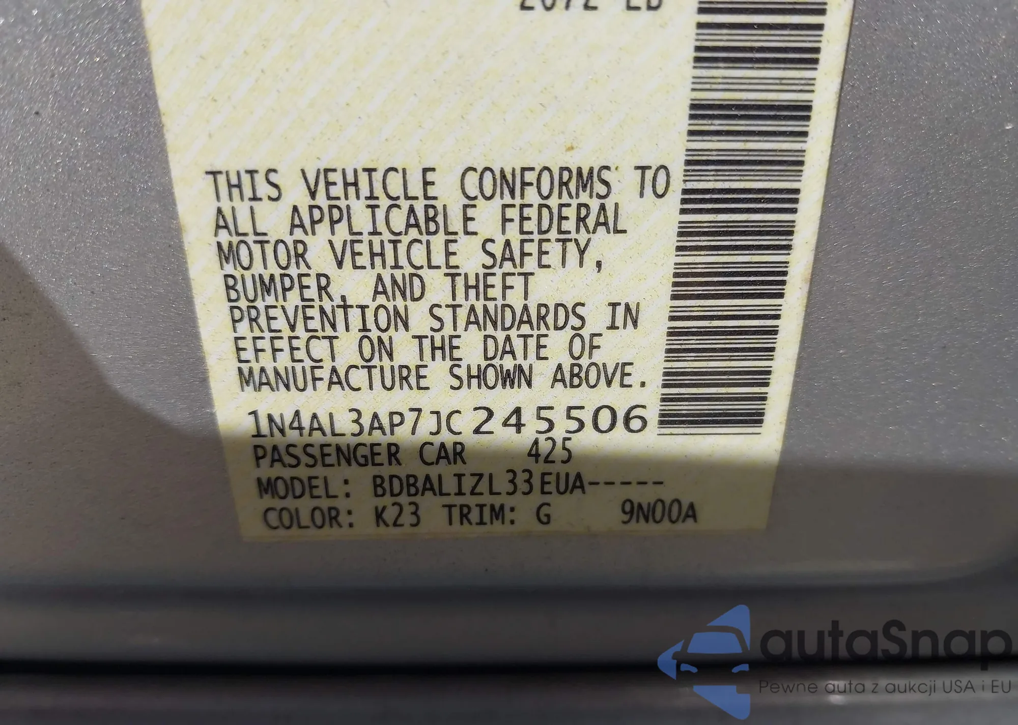 LOT: 42857034 VIN: 1N4AL3AP7JC245506