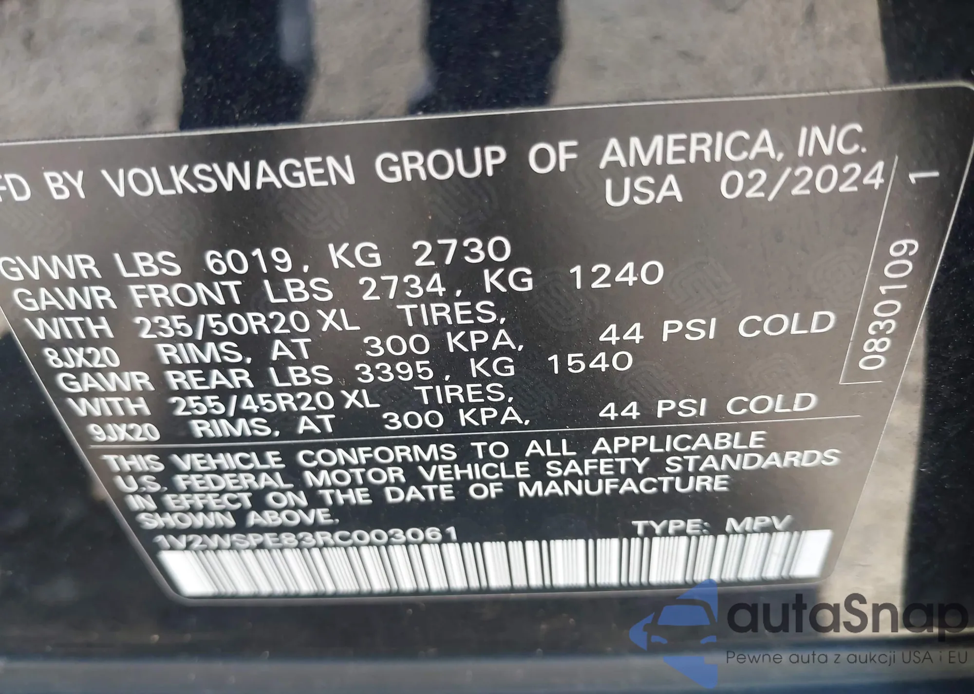 • VIN 1V2WSPE83RC003061