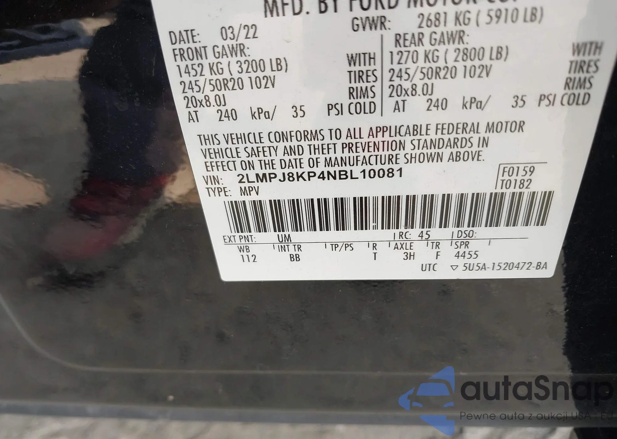 • VIN 2LMPJ8KP4NBL10081