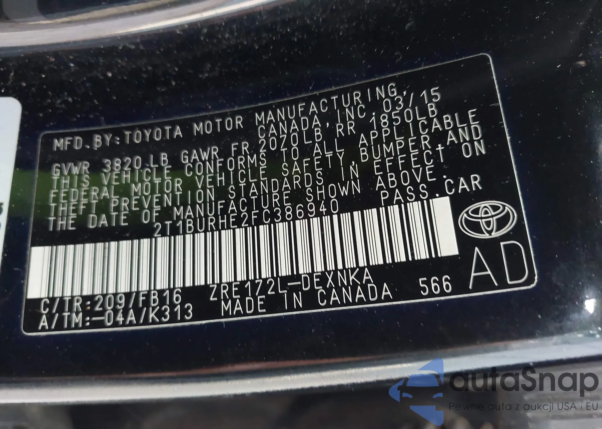 LOT: 43105546 VIN: 2T1BURHE2FC386940