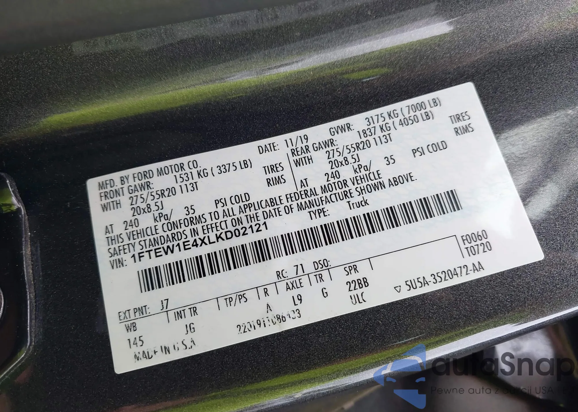 LOT: 42923257 VIN: 1FTEW1E4XLKD02121