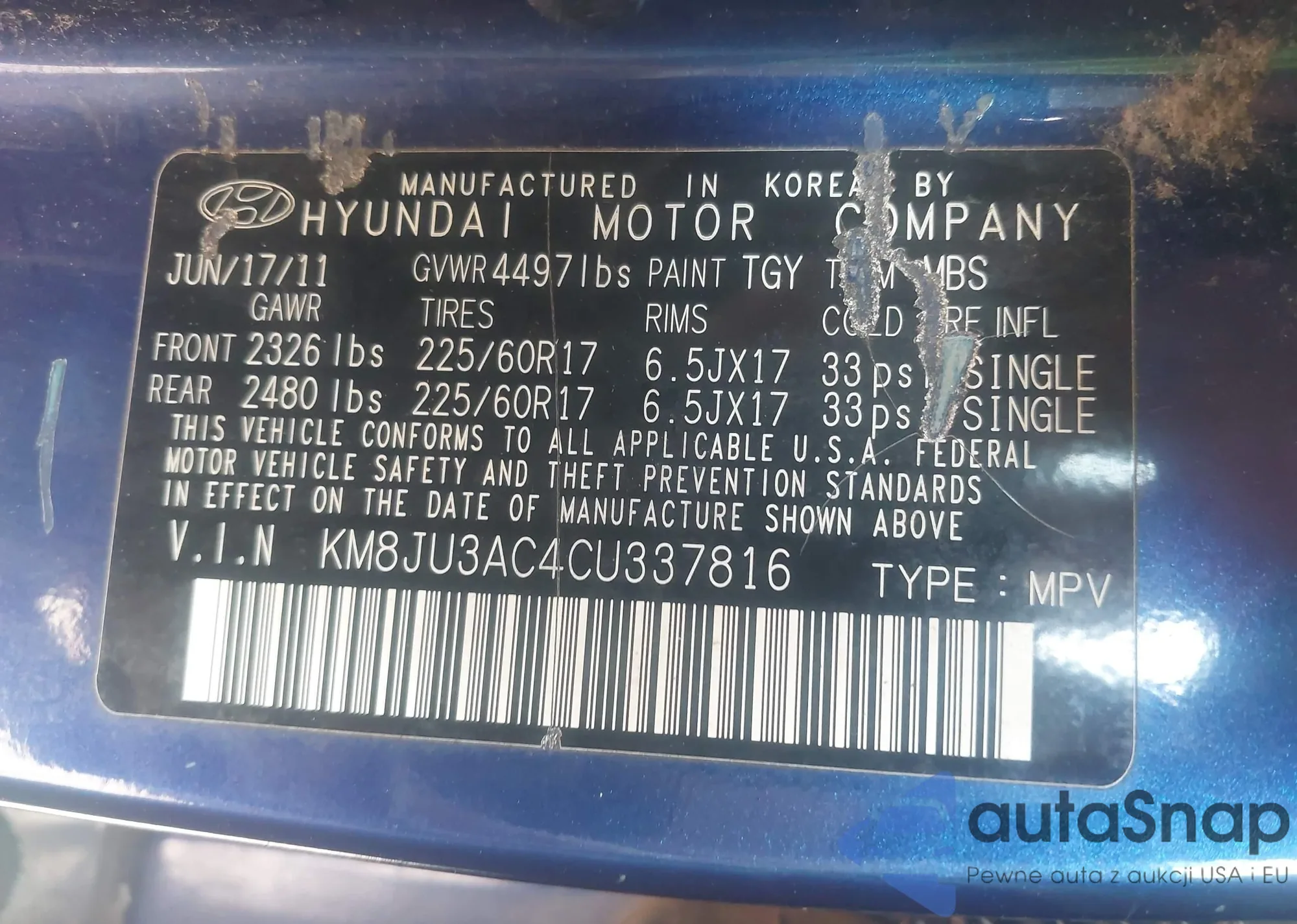 • VIN KM8JU3AC4CU337816