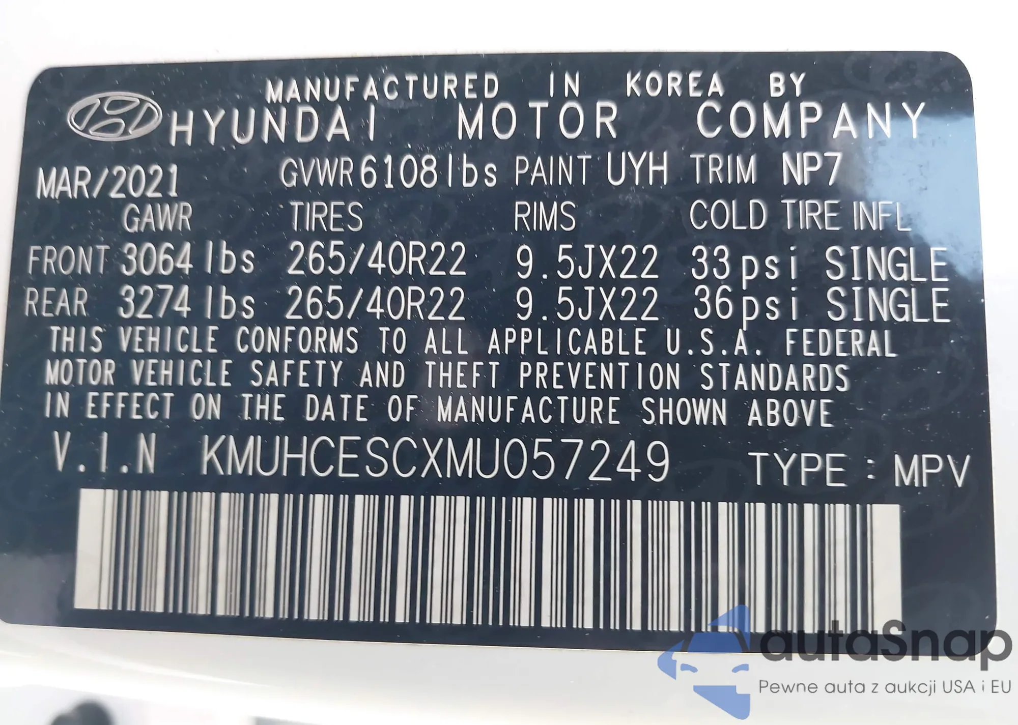 LOT: 42904154 VIN: KMUHCESCXMU057249