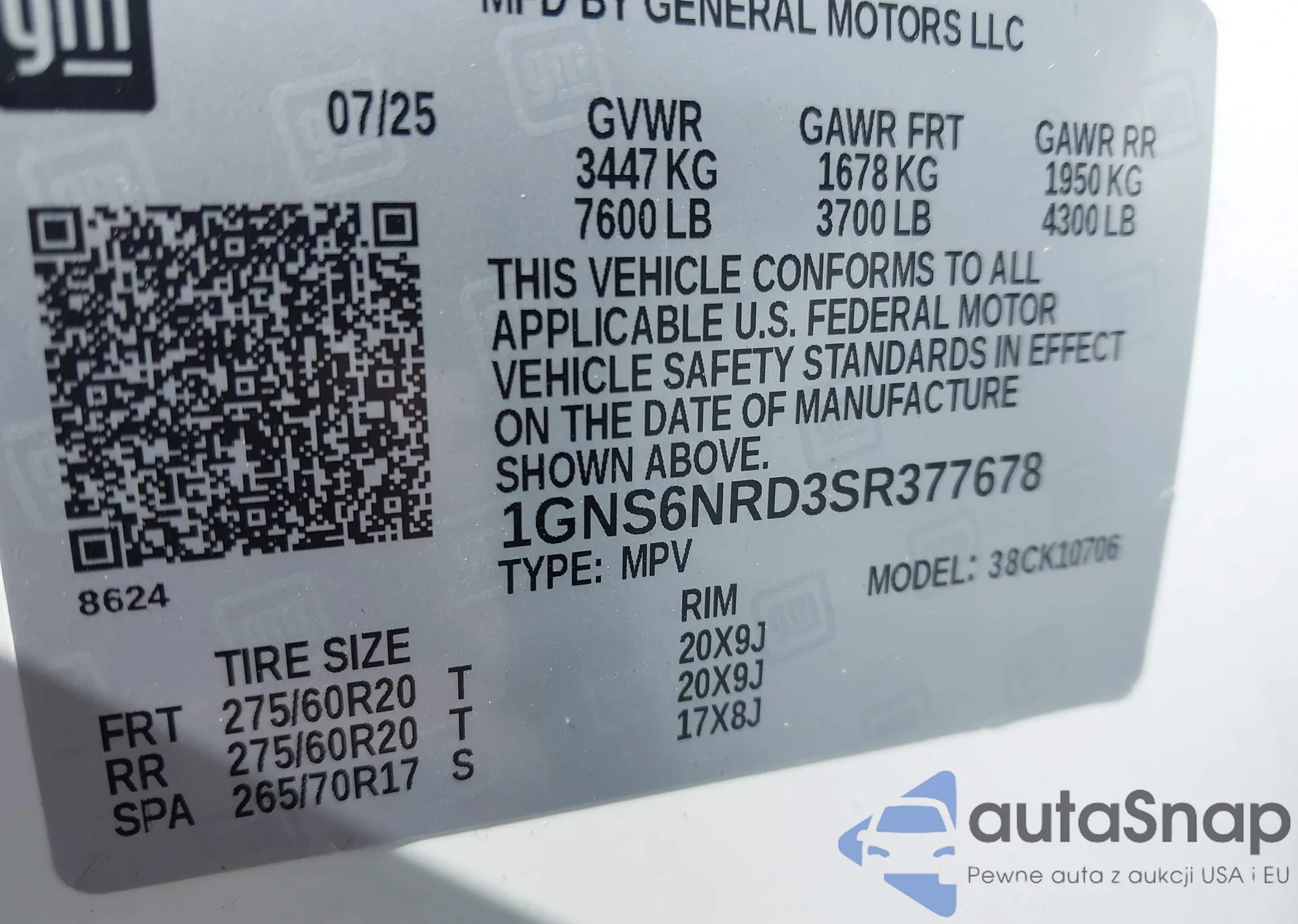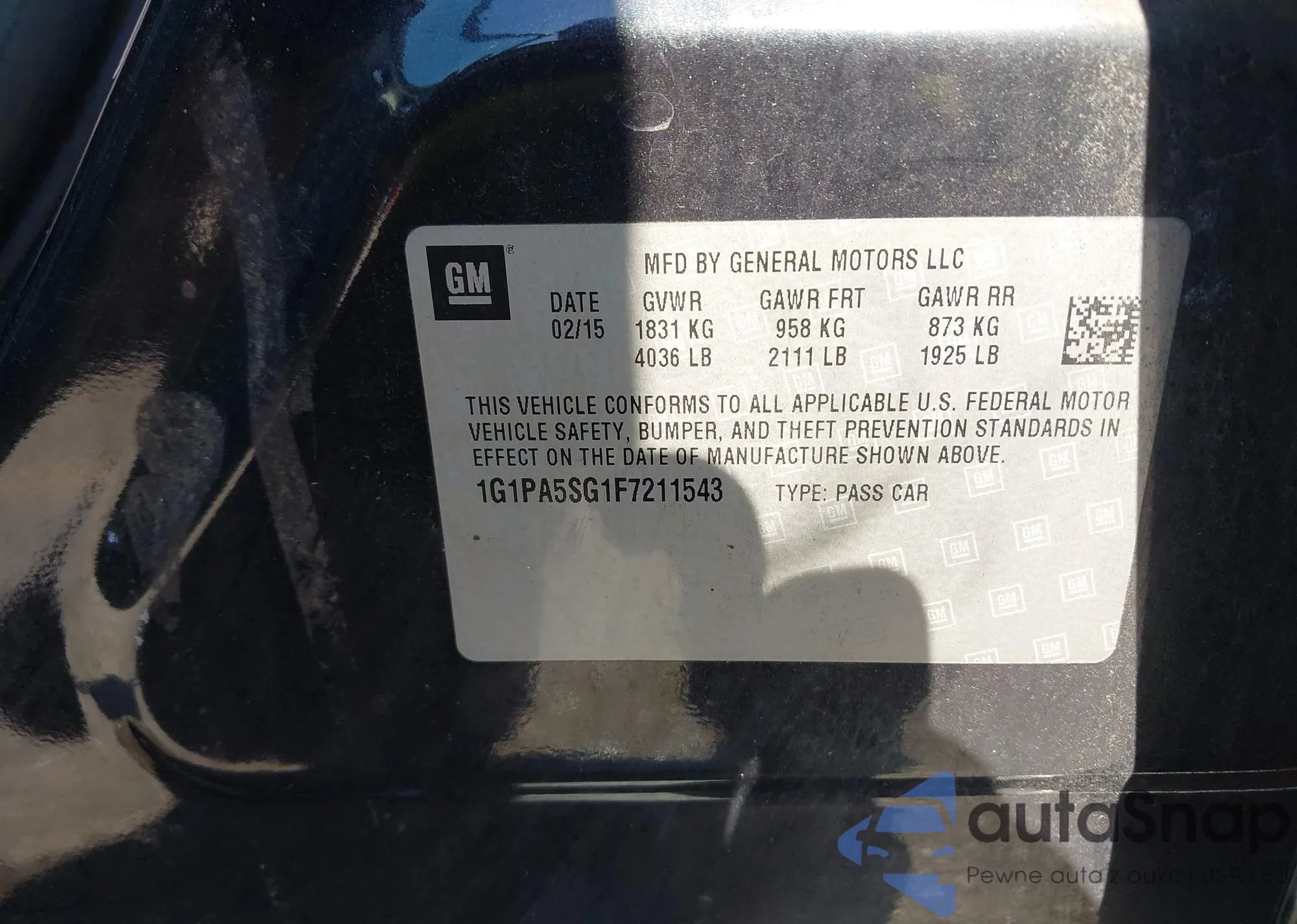 LOT: 43107880 VIN: 1G1PA5SG1F7211543