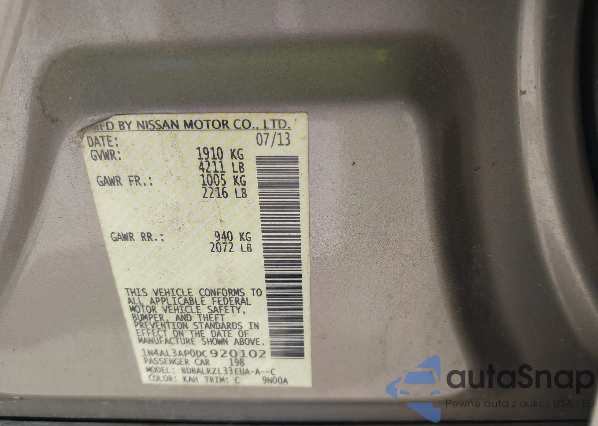 • VIN 1N4AL3AP0DC920102