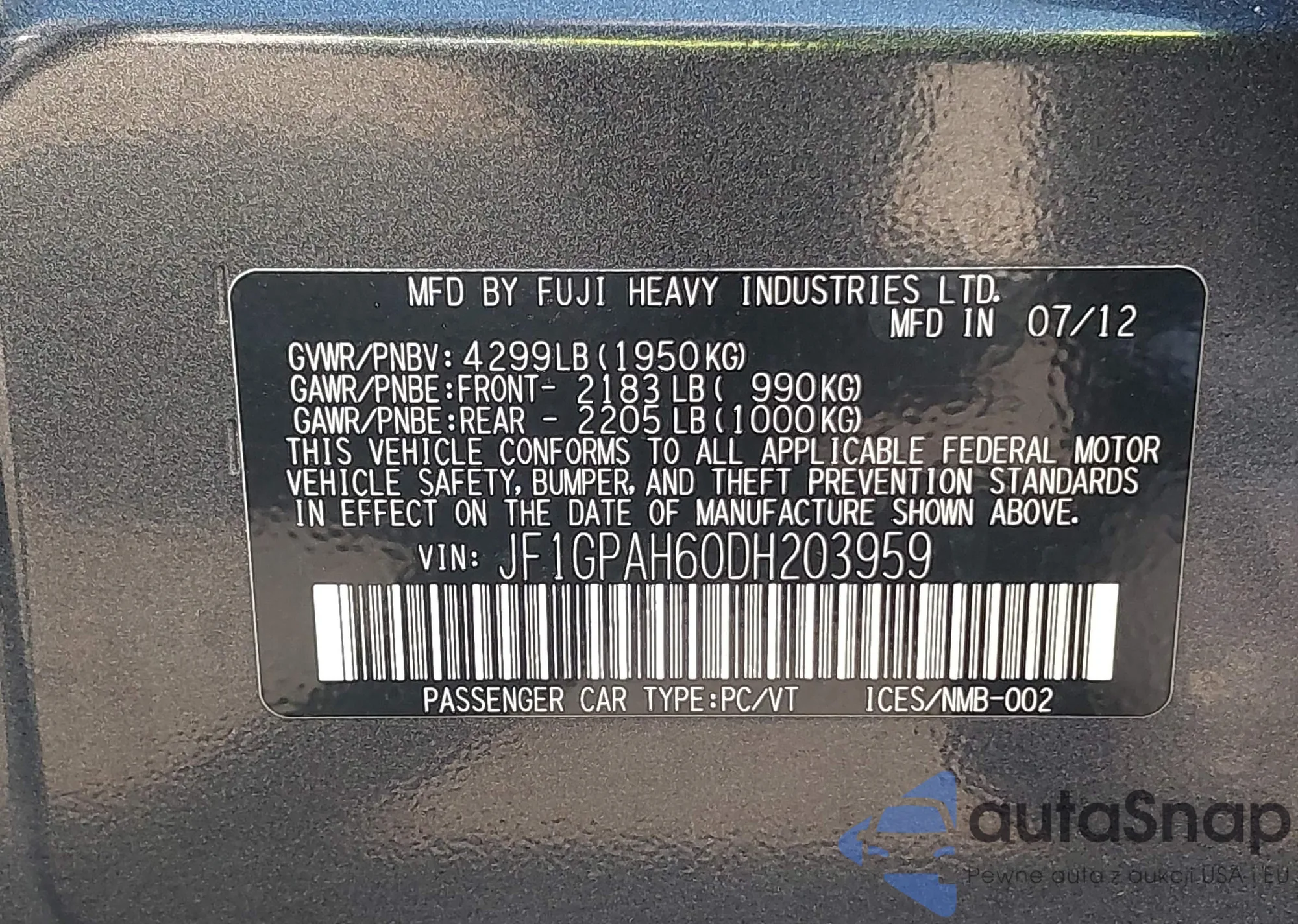 • VIN JF1GPAH60DH203959