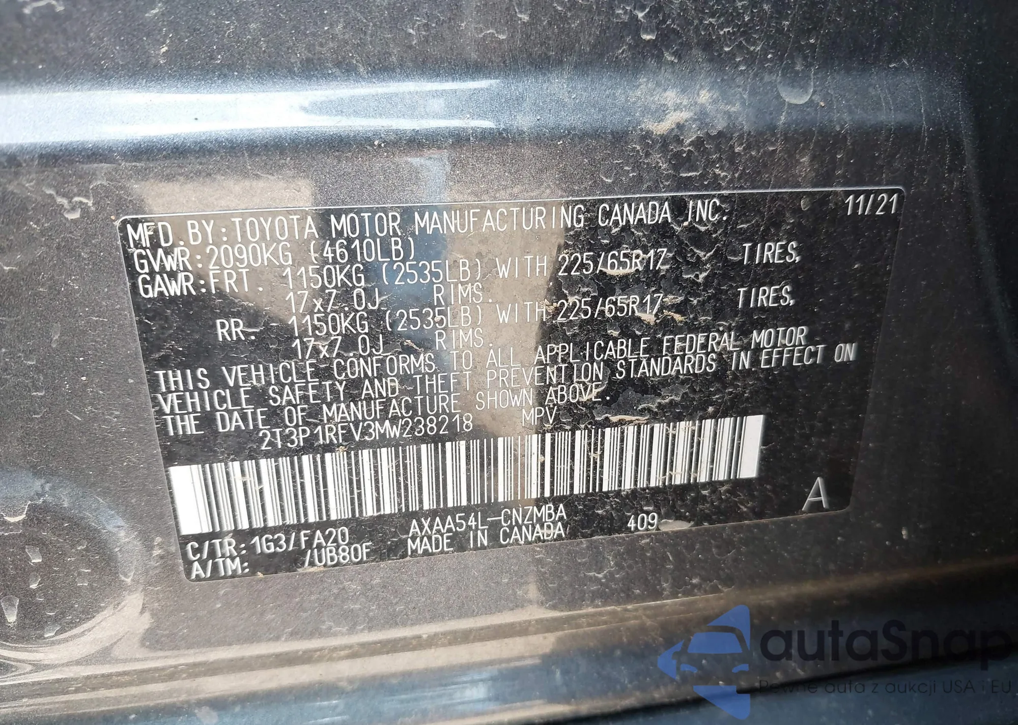 • VIN 2T3P1RFV3MW238218
