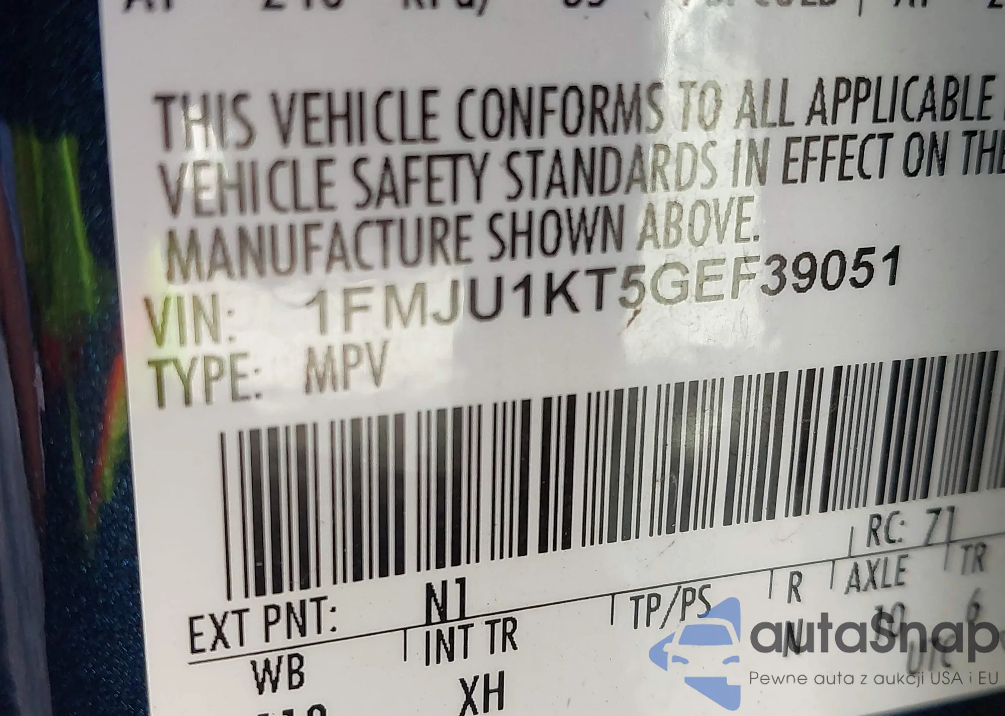 • VIN 1FMJU1KT5GEF39051