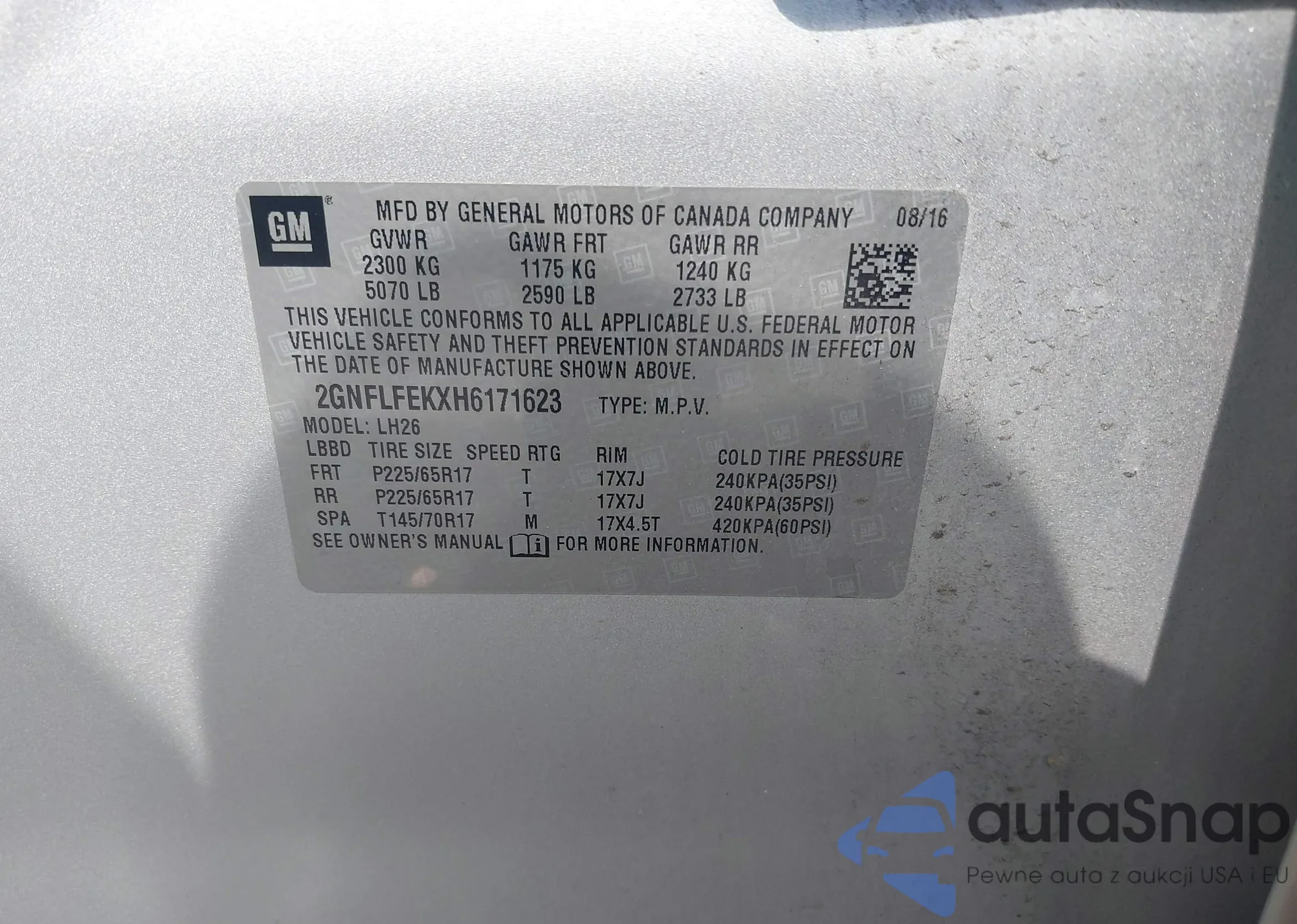 • VIN 2GNFLFEKXH6171623