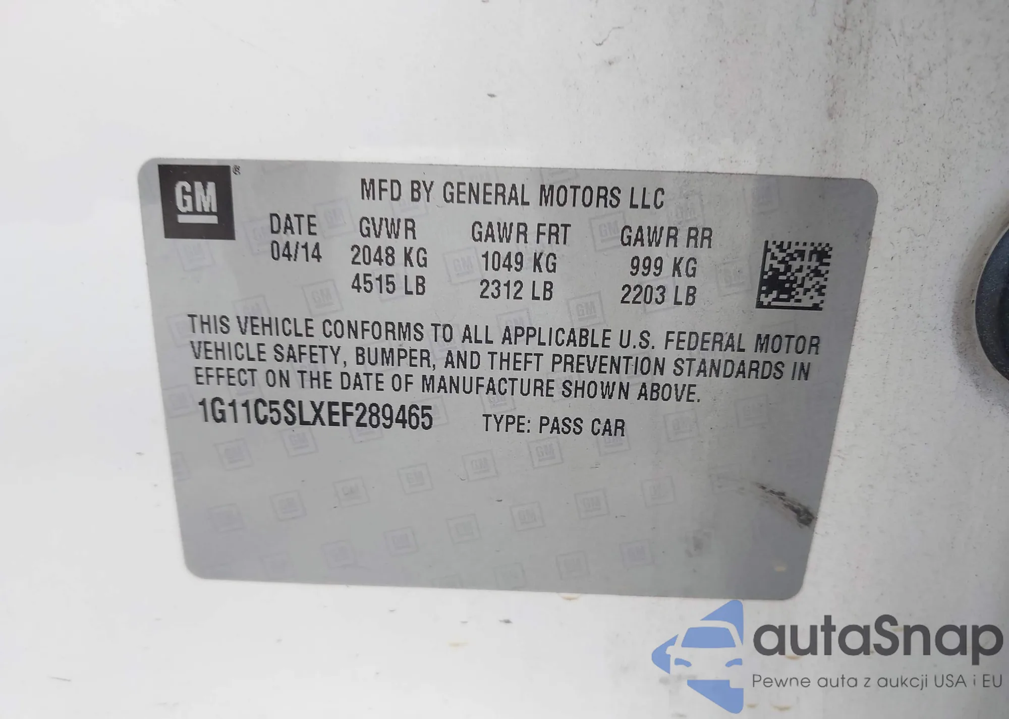 LOT: 43069772 VIN: 1G11C5SLXEF289465