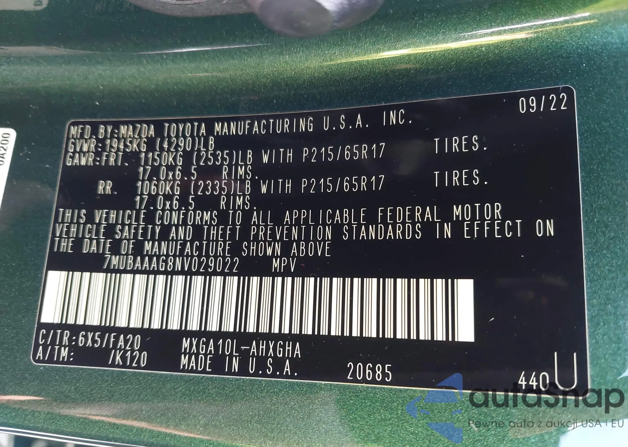 • VIN 7MUBAAAG8NV029022